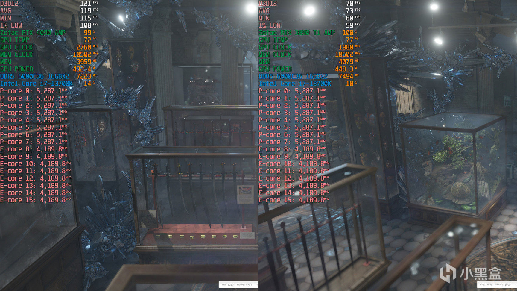 游戏方面选择了8款热门3A大作,主流网游没有进行测试,RTX 4090对于单机向玩家,显然在体感上的变化会更强烈,以下测试不仅限于传统光栅化游戏性能,而且包括纯光追、光追+DLSS以及DLSS 2对比DLSS 3这些测试环节。除此之外,帧数体现是一方面,另一方面也展示详细的硬件OSD信息,这样可以充分了解显卡运行状况,由于篇幅关系,测试项目都是4K项目。