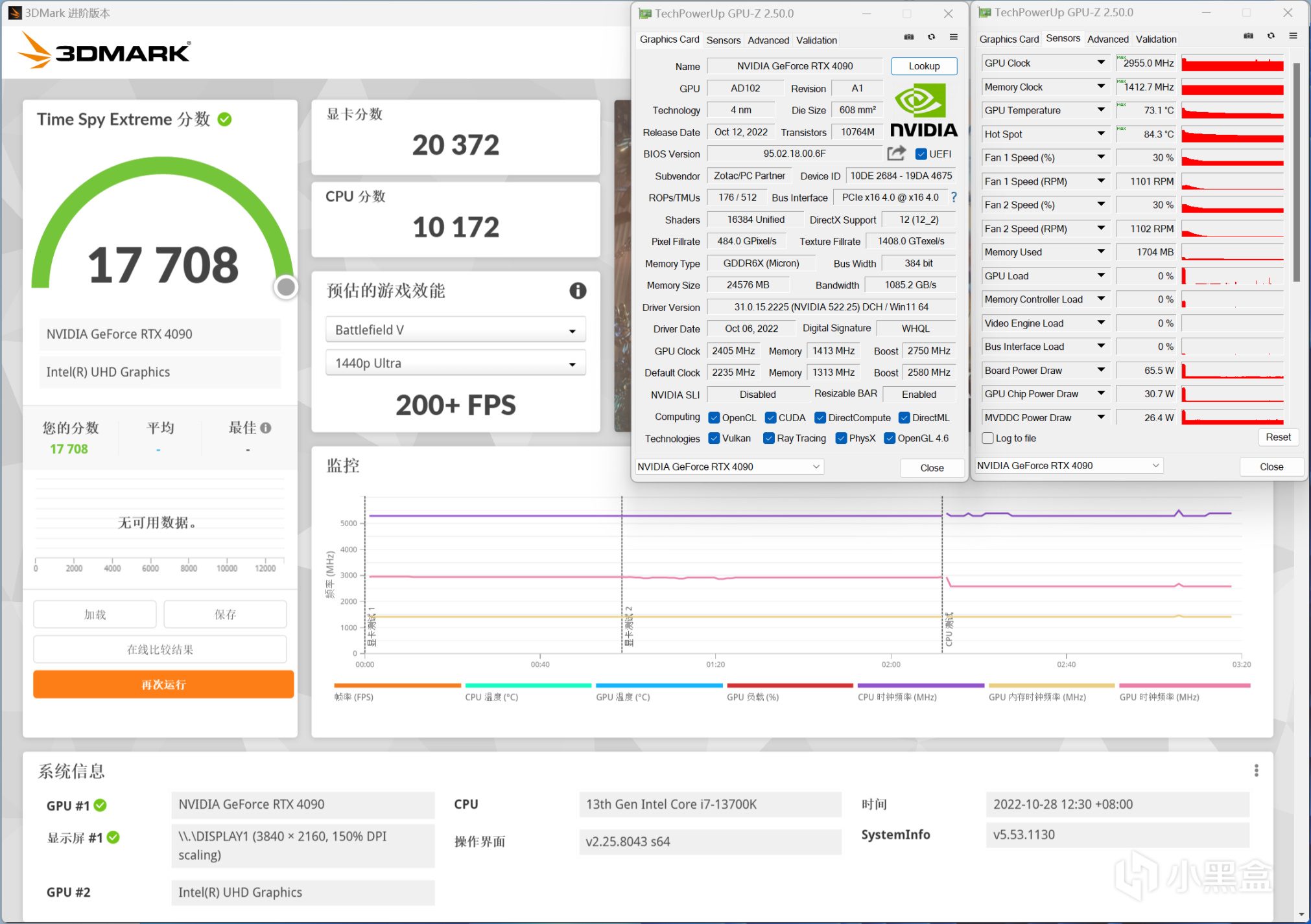 RTX 4090 AMP对比RTX 3090 Ti AMP在Time Spy Extreme压力项目下烤机