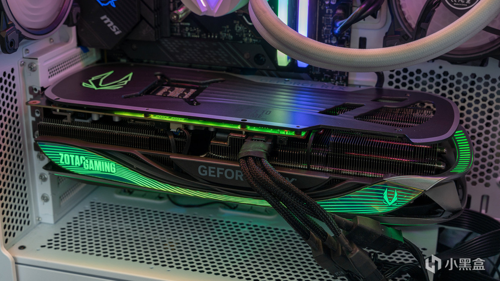 RTX 4090 AMP上机效果,整体灯效呈现一种线条美感,这方面和上一代RTX 3090 Ti AMP倒是一致