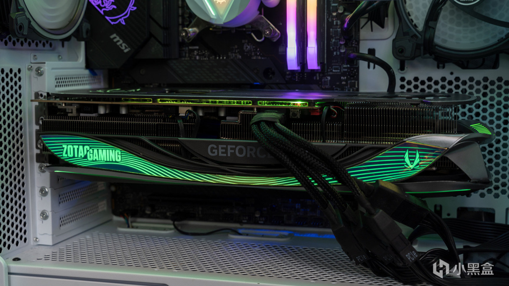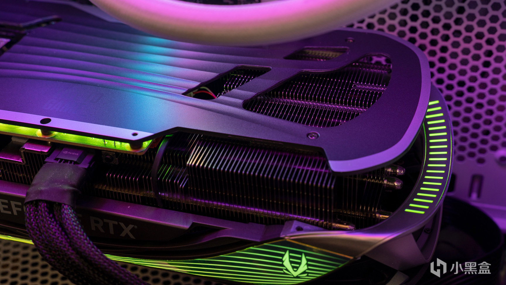 侧面角度,实际上显卡正面也有灯环式的ARGB效果,传统横装是看不到的