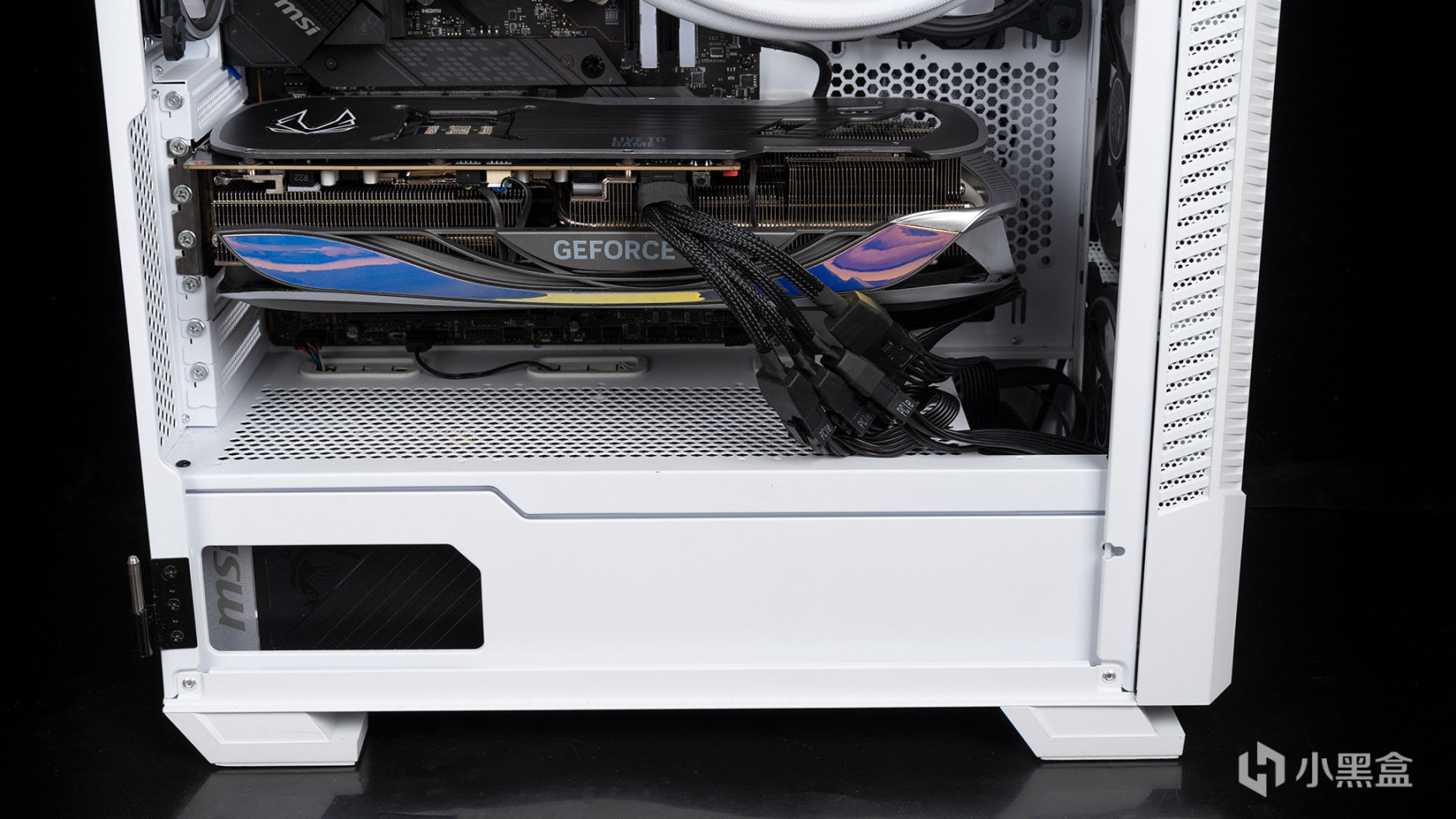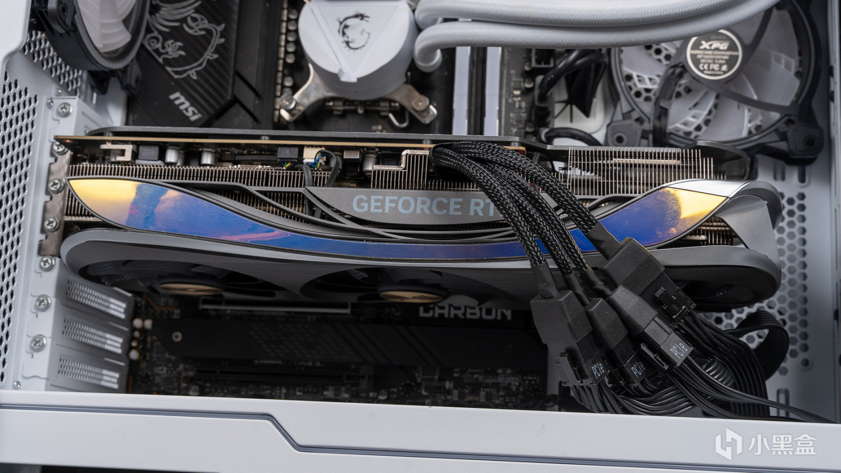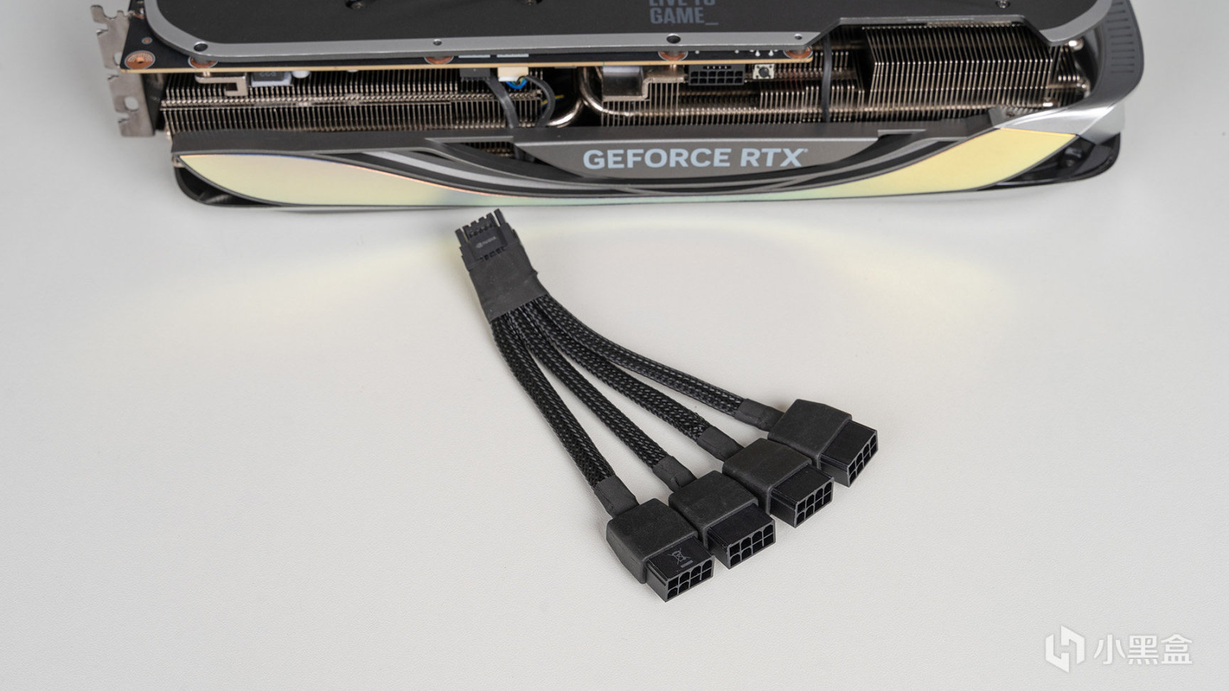 显卡提供4*8Pin转12VHPWR的转接线,确保非ATX 3.0电源可以兼容使用,能提供600W供电输出能力,在美观度上还是使用ATX 3.0电源会简洁好看很多,毕竟是一线直连。