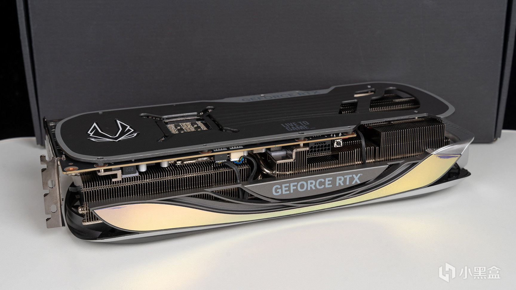 要知道上一代AMP配备的18+3相已经很奢华,RTX 4090 AMP进一步采用24+4相DRMOS超高规格供电,传承索泰一贯优良传统。显卡全长达到35.5cm,想塞进ITX和一些小型MATX机箱是有难度的,尤其3.5槽厚度也是一大解决难题,这样来看,反而公版兼容性是最良好的。