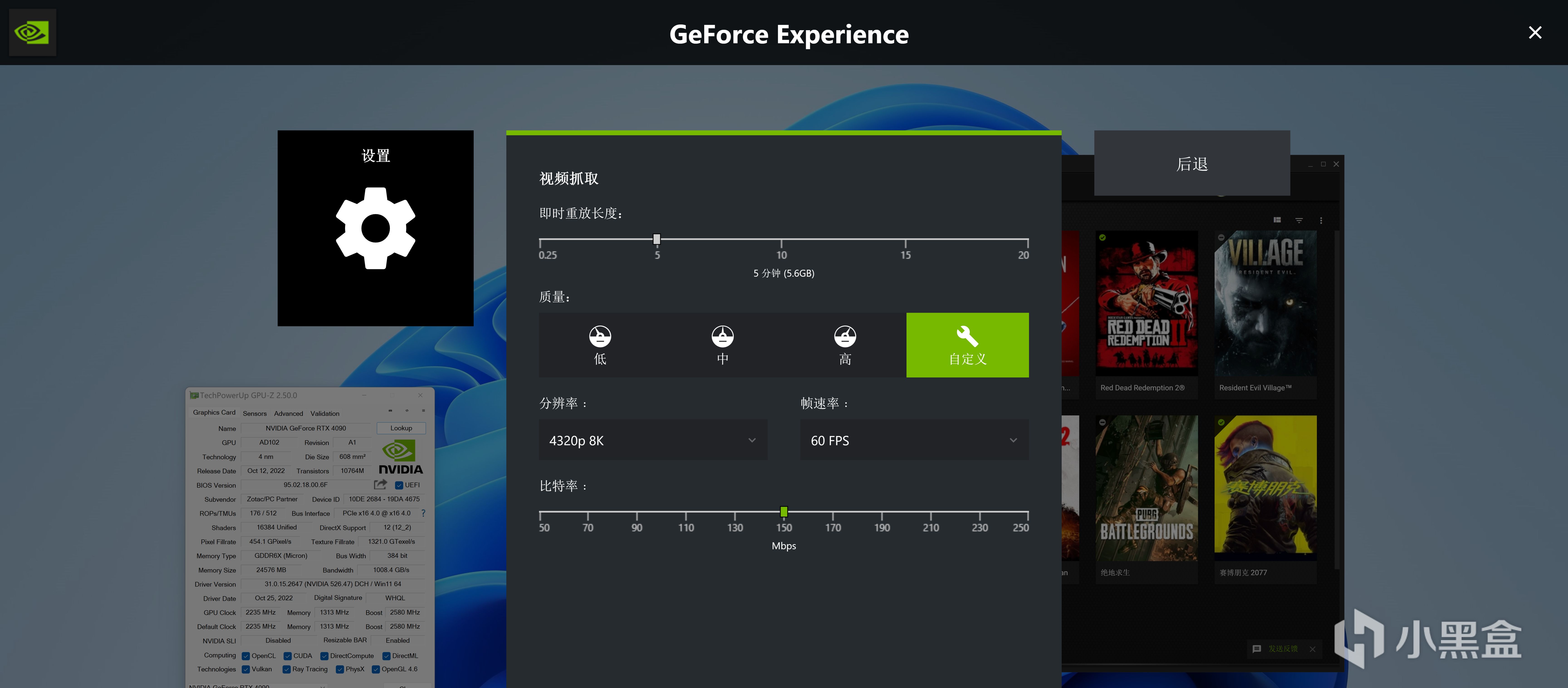 对于发烧级游戏玩家来说,现在RTX 4090 AMP在GeForce Experience中能够支持录制8K分辨率视频了,码率最大可设置250Mbps,配合AV1编码原视频,最后上传到视频网站,整个视频制作流程效率会更高,画质也更棒了。