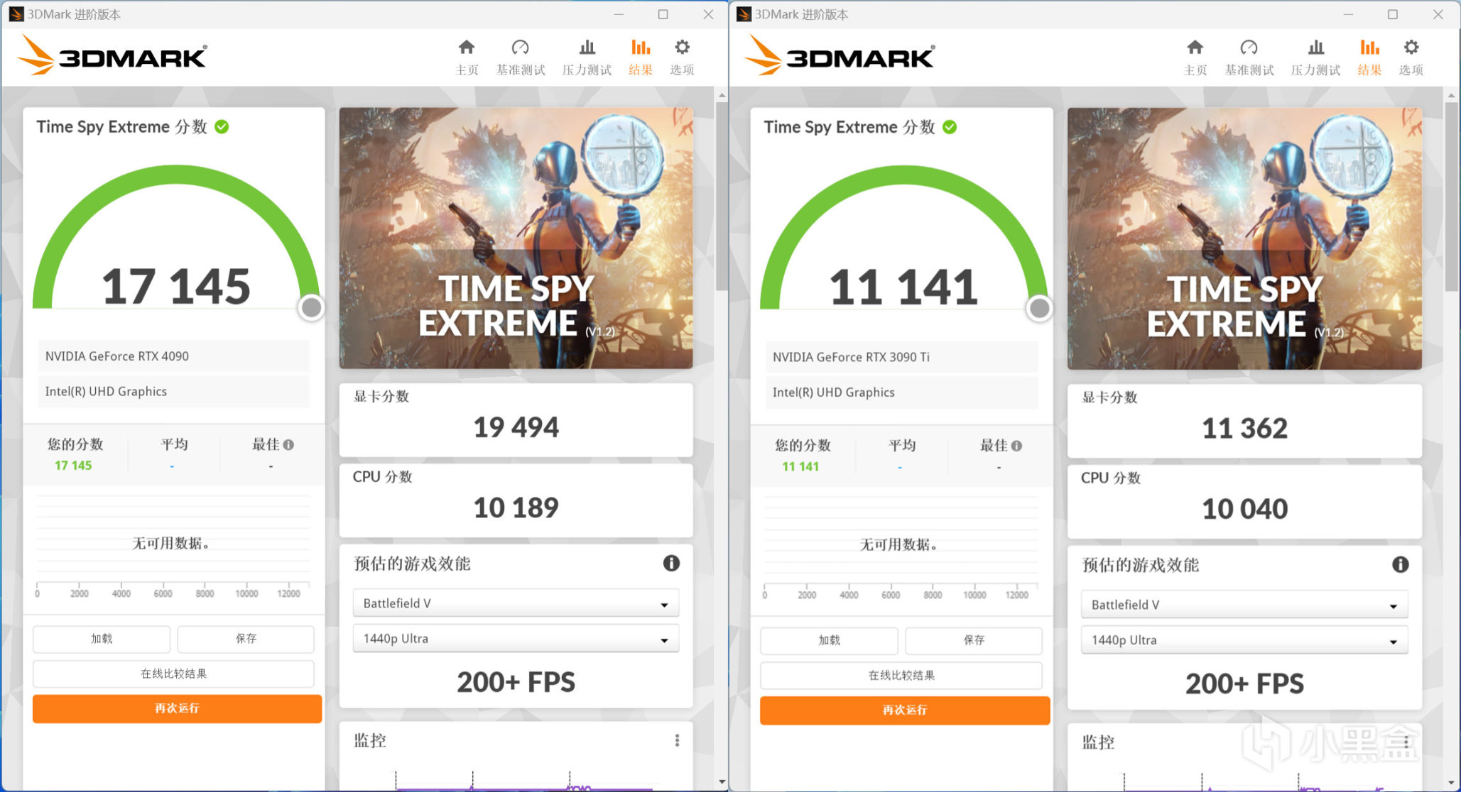 3DMark Time Spy Extreme项目,RTX 4090 AMP显卡分数为19494,RTX 3090 Ti AMP显卡分数为11362,提升71%