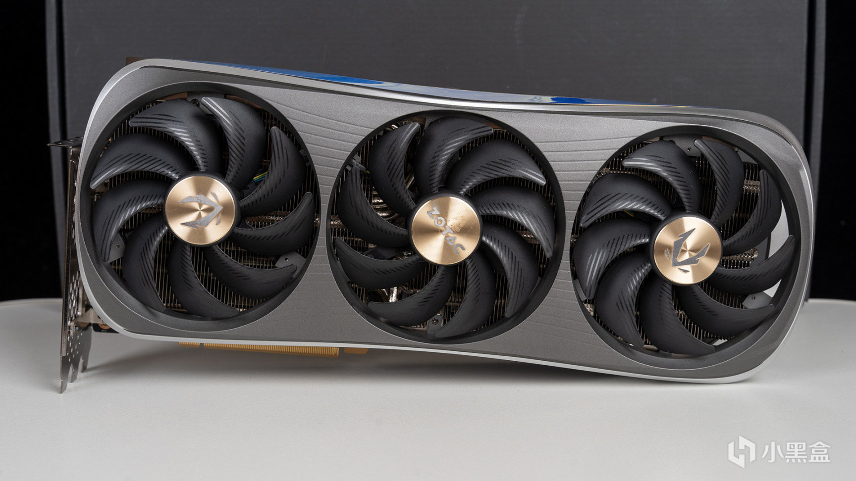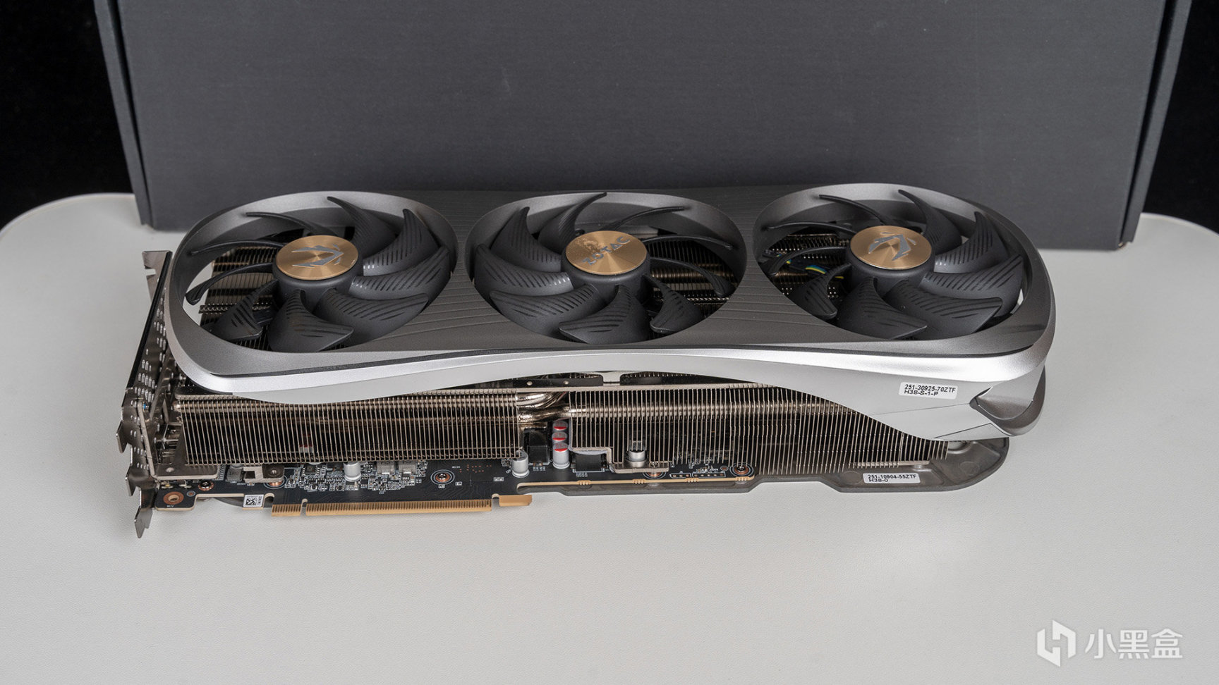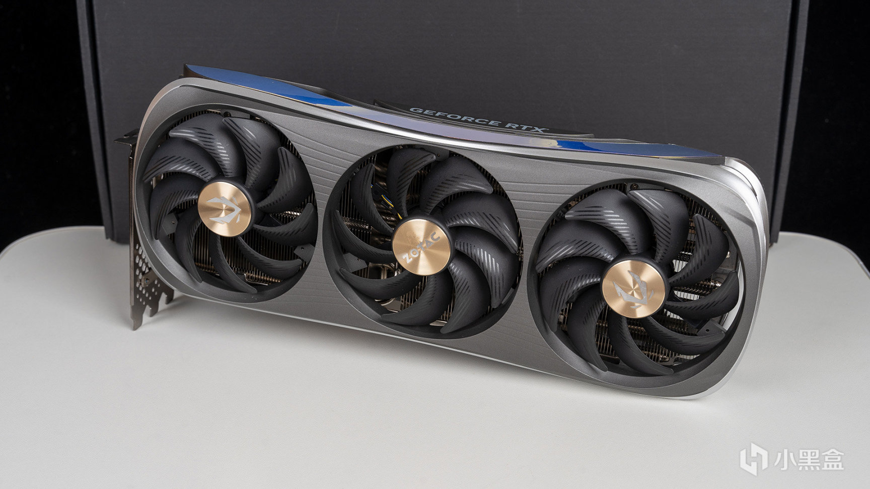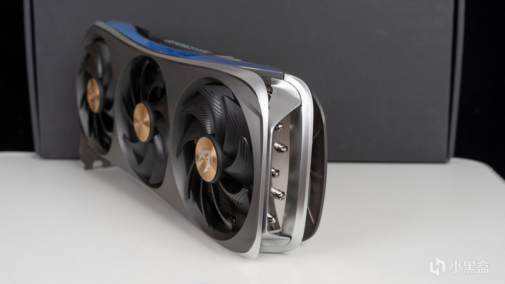 这次上手的是来自索泰顶级非公——RTX 4090 AMP EXTREM AIRO(以下简称RTX 4090 AMP),整体外观设计比上一代AMP系列更优雅,同时向圆润化设计靠拢,RTX 3090 Ti AMP则是优雅中偏向凌厉一点,当然它们两者的风格完全都是区别于PGF系列那种肌肉美感。