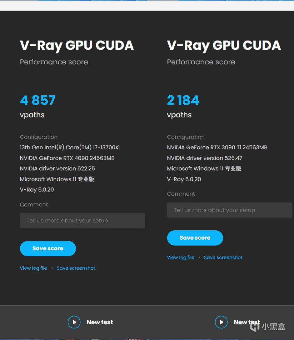 RTX 4090 AMP在V-RAY CUDA渲染项目得分为4857,RTX 3090 Ti AMP在V-RAY CUDA渲染项目得分为2184,提升达到122%