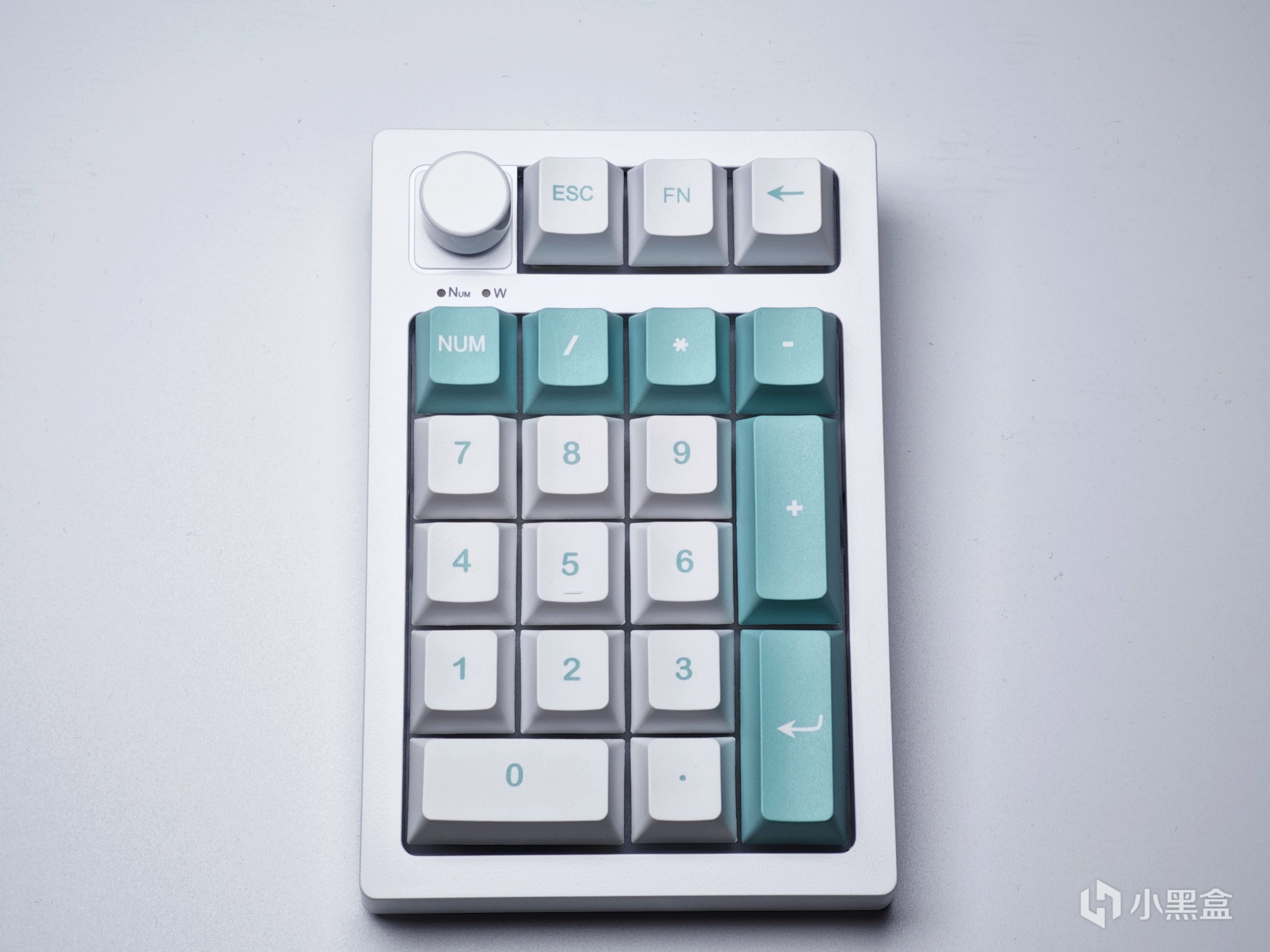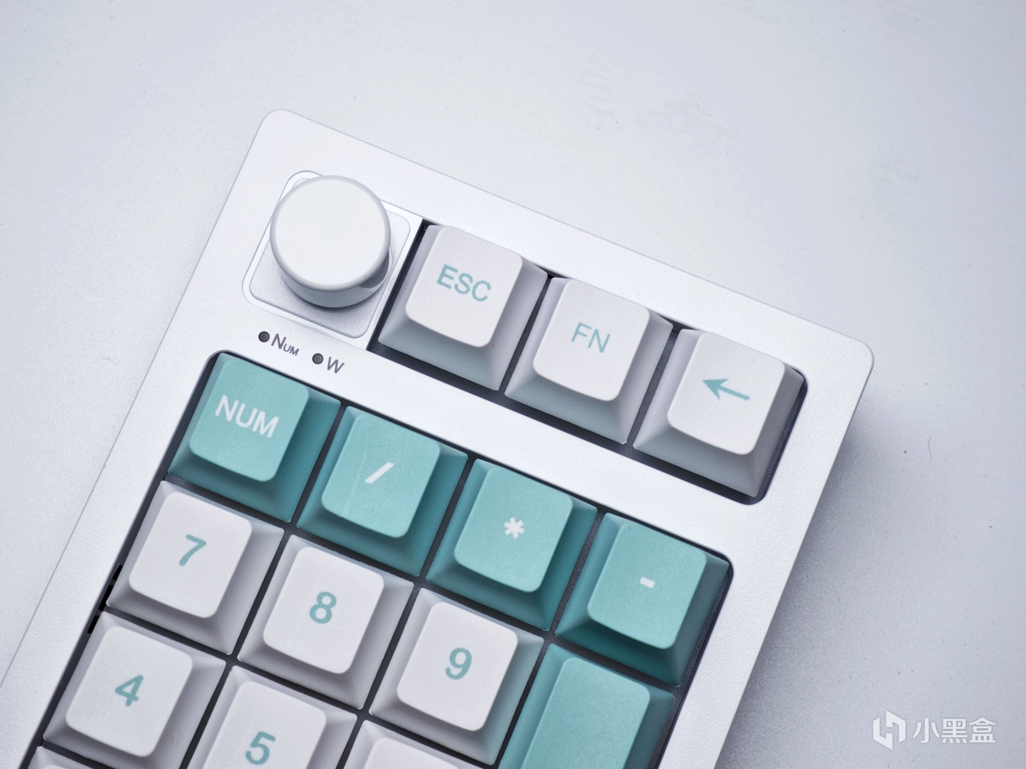 JJK21的这个配列就不用说了,整体其实就是104键盘中最右侧的部分,不过在顶部这一块的四个按键有所区别。JJK21中给的四个按键分别是旋钮、ESC、FN键以及退格,即使简单的当成个计算器用也不是不行(需要搭配计算机)