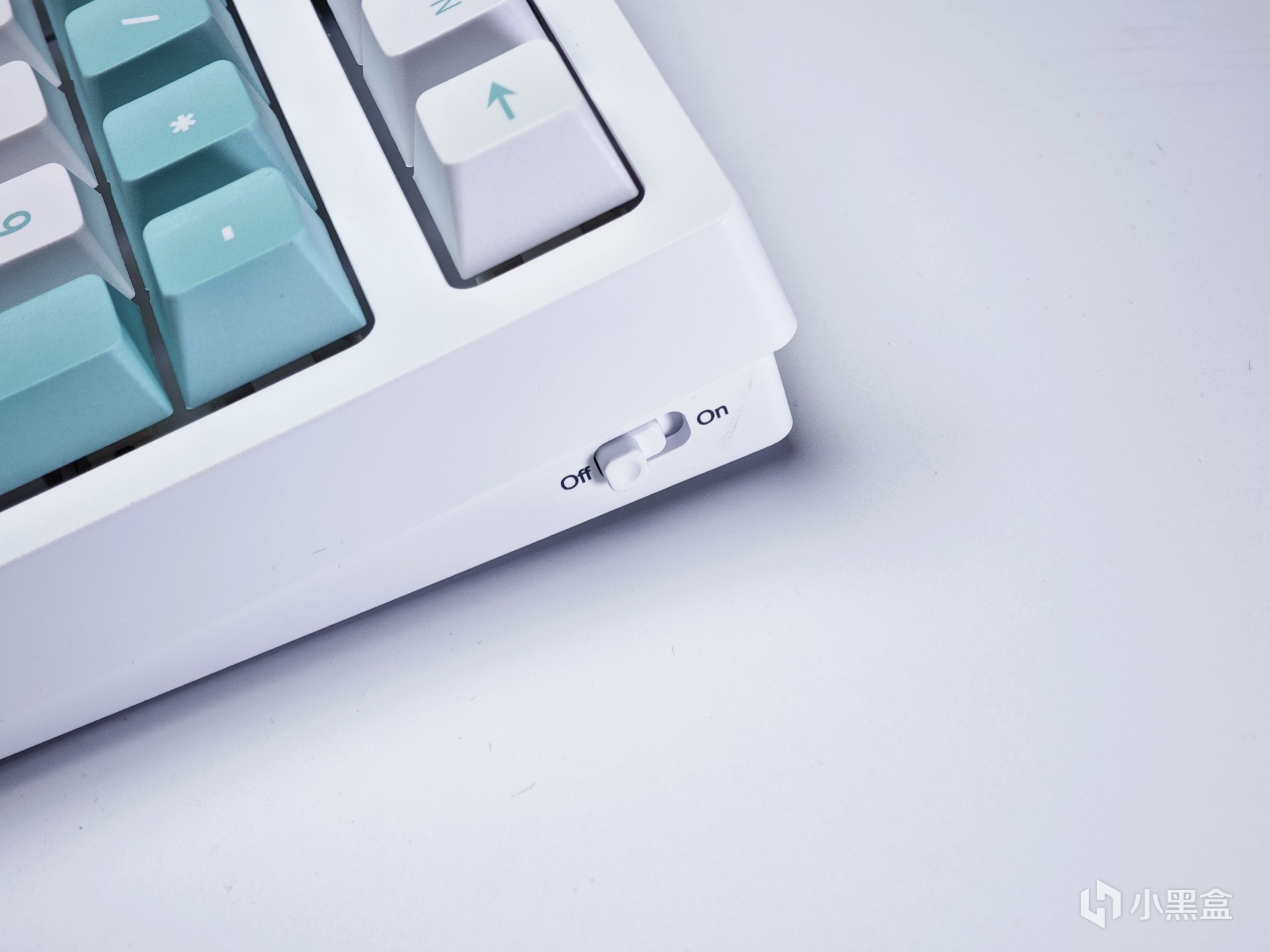 键盘的无线开关位于右侧,只有开/关两个档位,如果想调节2.4G以及蓝牙模式要通过键盘上的组合键来完成切换。
