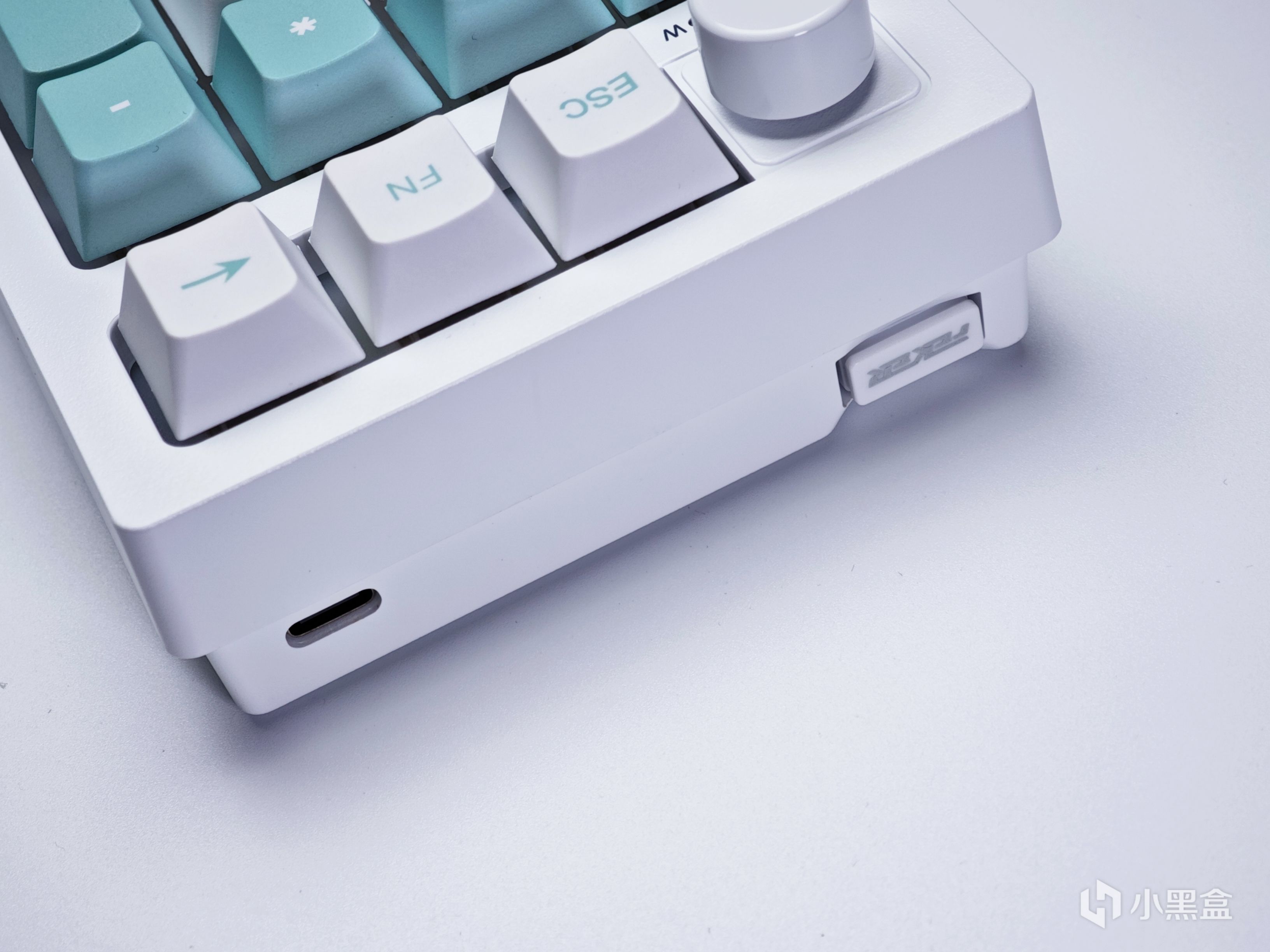 后侧面可以看到Type-C接口位于左侧,2.4G接收器位于右侧位置,不过别看收纳仓位于侧面,想要拿出来估计还是需要将整个键盘拿起。