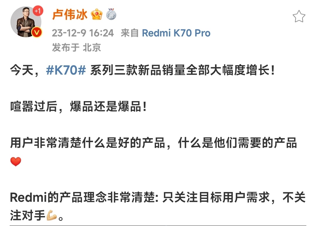 上面也說到了今年中端機市場廝殺的激烈,先發布的k70有首發優勢但是也給了友商調整的機會。真正的性價比之王真我GT5PRO登場,這個價格這個配置確實無可挑剔。所以紅米只能拿一加開刀了,但是下午說不關注對手。晚上就直接開炮友商,轉眼又來了個不和豬摔跤。確實令人深思!
