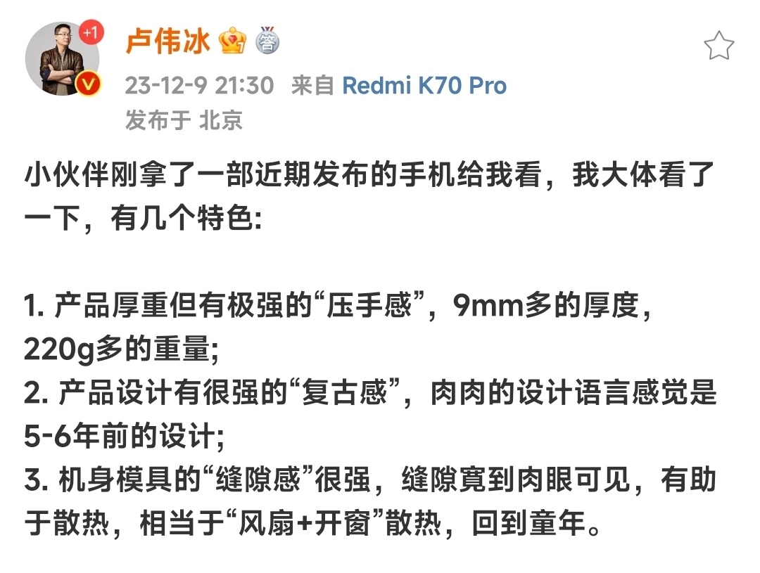 迴旋鏢並不少見,基於當時的時勢判斷做出的結論。可能在以後看起來有點滑稽,但是如此之快的打臉卻讓人有點猝不及防。例如之前的紅米,K60至尊版因爲攜帶ip68技術,於是紅米自然大力的宣傳稱其爲核心技術。但是你轉眼k70毛都沒有卻有點過分了吧。
