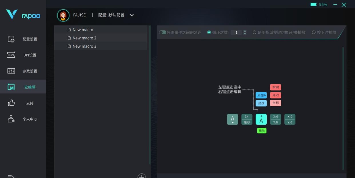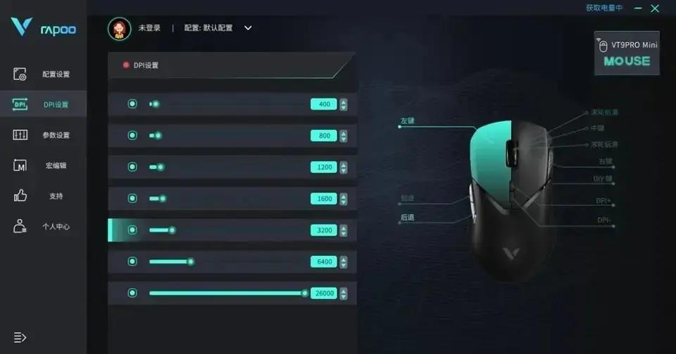 且雷柏vt9pro可以搭在驅動使用,說到驅動就不得不講下了,雷柏一直在驅動上做的很好,適配性做的很強,在驅動中有更多的功能和選擇:比如錄製鼠標宏,配置文件以及對四檔回報率,11段靜默高度等功能進行調節