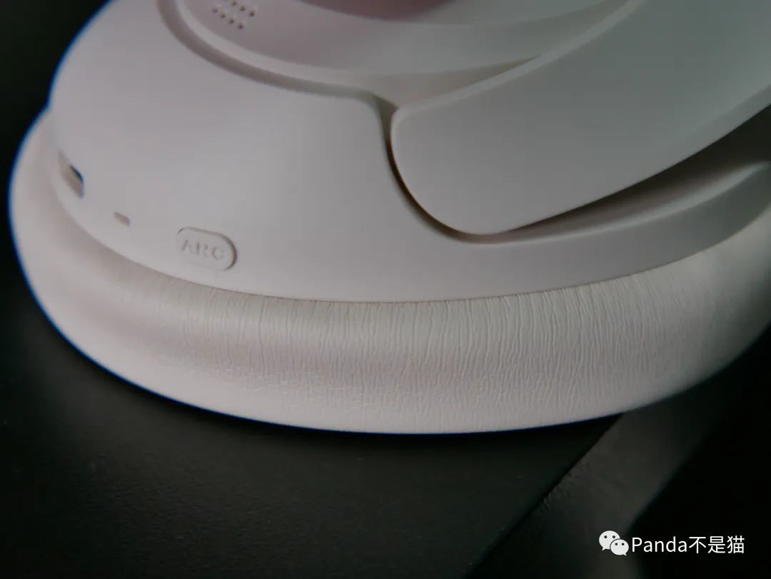 这款耳机的耳罩部位采用了高级仿蛋白皮材质,摸起来特别的柔软,与耳朵接触的时候也没有感到过闷或者其他不适情况。这要归功于耳机内部加入了慢回弹记忆海绵,这种材料能够根据使用者的耳朵形状进行自我调整,以达到最佳的佩戴效果。