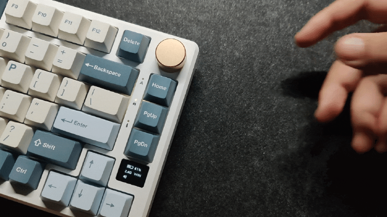 产品特点:多功能旋钮、三模、Gsk、75%配列、OLED屏幕、下灯位