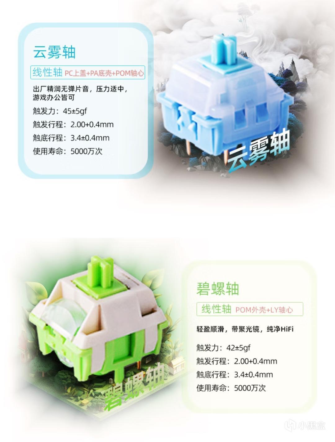 轴体方面有云雾轴与碧螺轴两种线性轴体可选,我手中这把是云雾轴。