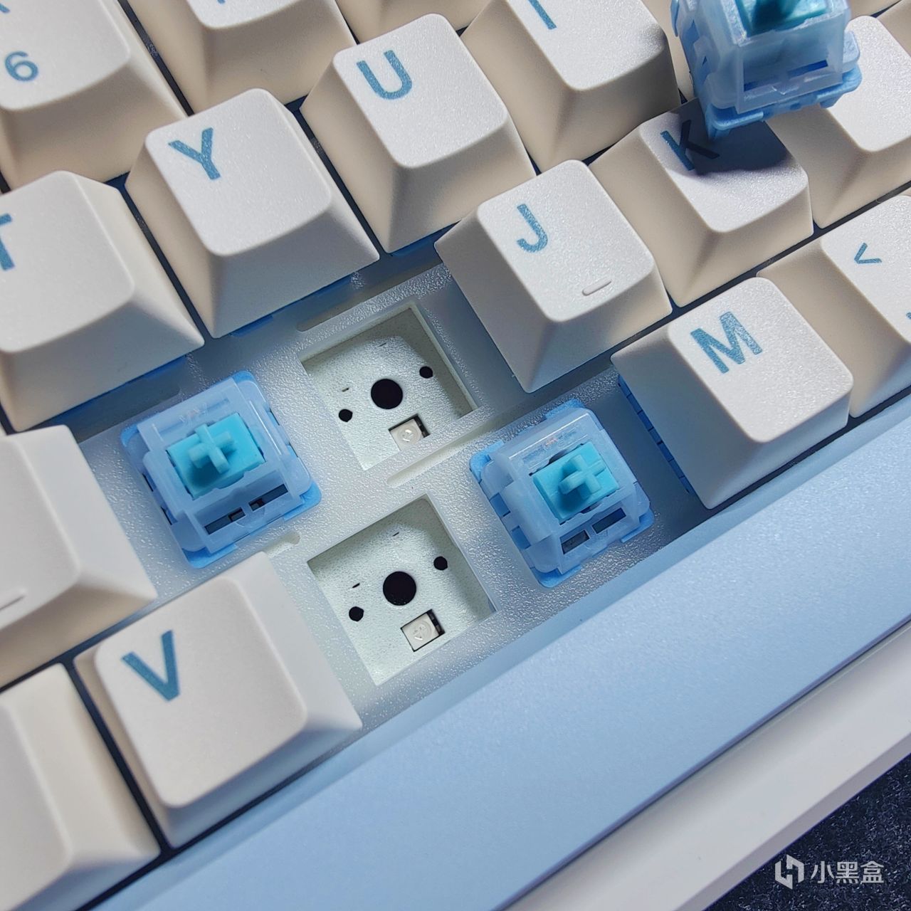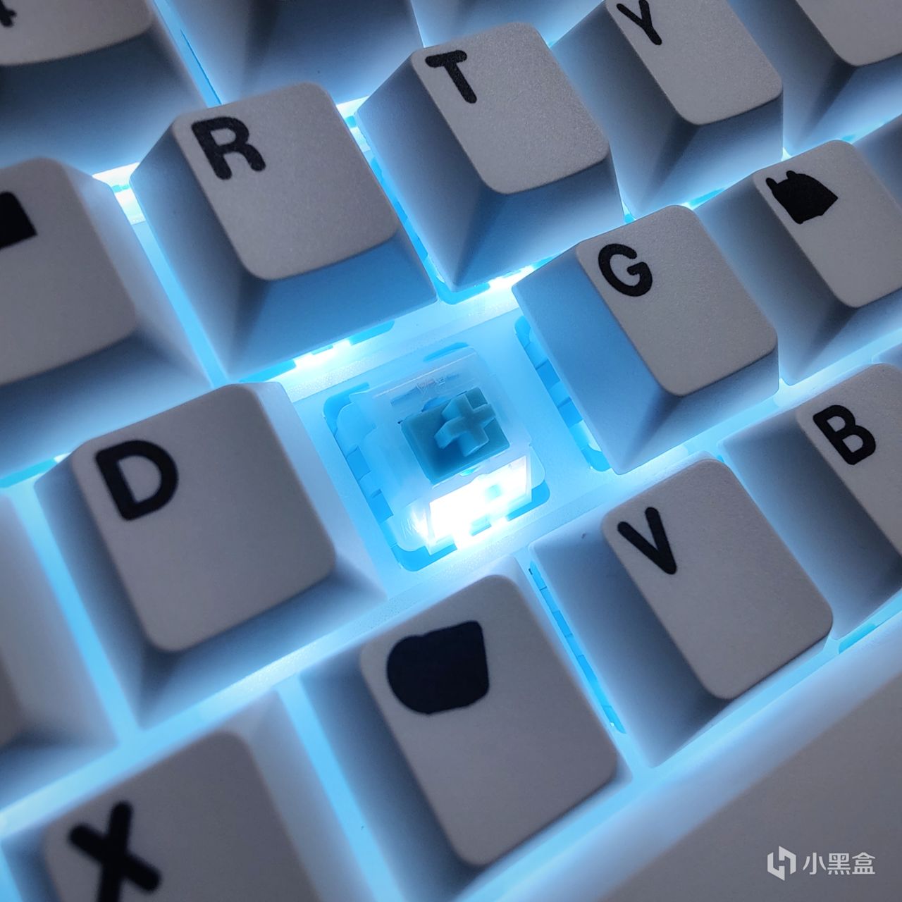 全部替换完成后,全白的外观+白色的动态光效结合蓝透的云雾轴(因为轴体下壳是蓝色)所以打出来的白光是有一点点发蓝的冰冷色,肉眼来看整体视觉效果爆炸。