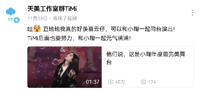 有了這麼多基礎,你才能看到,「天美」和「快樂」這兩個印象,其實已經在不少玩家心裏綁定了。舉個最簡單的例子——假如你在單位聽到一聲「TiMi」,可能就會會心一笑,因爲你知道,有人要開始快樂了。前一陣,一個叫《TiMi一響,快樂登場》的視頻在網上爆火,也有異曲同工之妙。