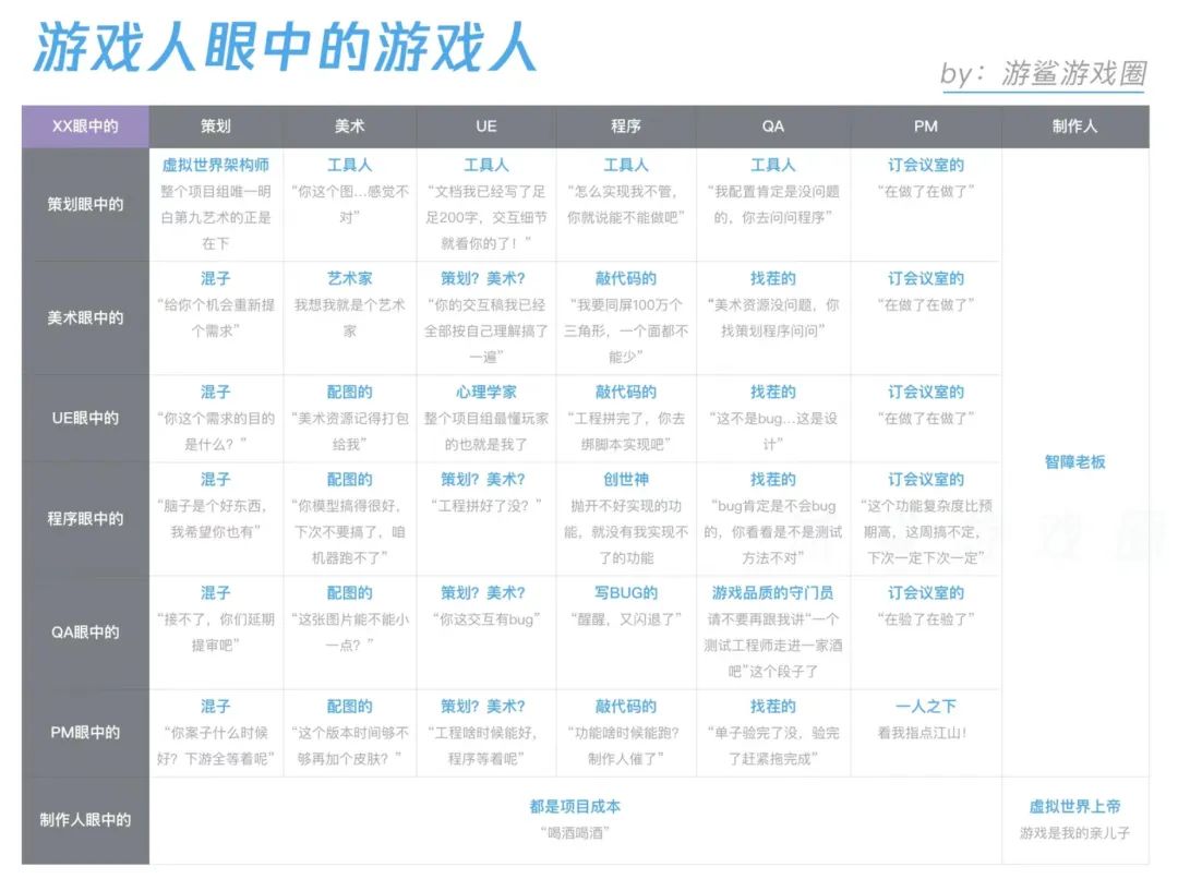 要說天美的真實形象,肯定不至於這麼油膩。畢竟團隊大多數成員都是年輕人,工作室本身也才成立十多年而已。但這種認知上的誤解,在溝通和了解不足的情況下確實很普遍。舉個簡單的例子:在遊戲公司不同崗位之間,別人對你的印象,可能都會和你眼中的自己有一些出入,更別提差別這麼大的工作室和玩家羣體。