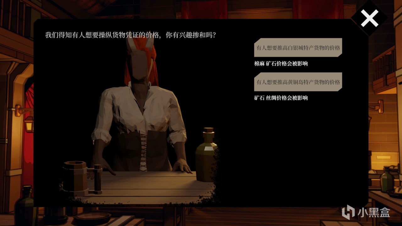 还记得游戏标题中的酒馆么,没错,你可以进入酒馆跟酒馆中的NPC进行社交,酒馆中有四个NPC,其中酒馆老板可以帮你找寻新的英雄进行招募,恢复精力以及提升好感之后紧急招募特定职业的英雄,了解商贸货物内幕,就是黑市中一些货物特产的信息,比如棉麻丝绸价格会被影响推高或者降低。