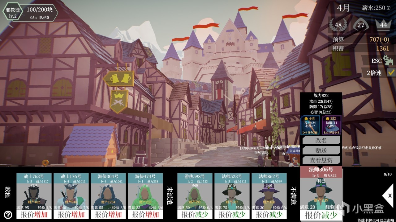 委托处理成功后还可以查看战斗过程,选择是否支付或是赖掉赏金,会降低英雄好感,当然成功完成委托会英雄不同阵营对你的支持度,若任一支持度为0游戏结束,游戏中有三种势力,人民、宫廷以及英雄,诚信交付赏金还会增加参与英雄的满意度,你可以通过查看英雄来查看指定英雄的属性。