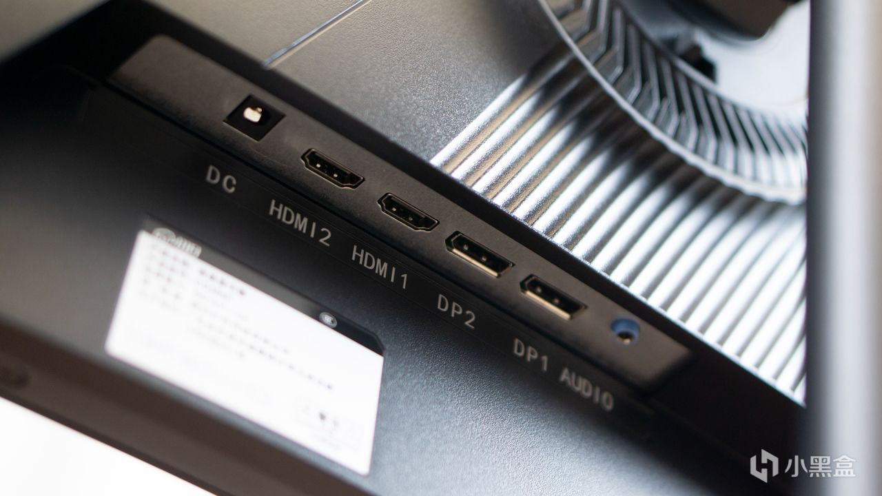 它的底部有一個DC、兩個HDMI、兩個DP和一個音頻口,從接口方面說,已經超越絕大多數同價位的顯示器啦。