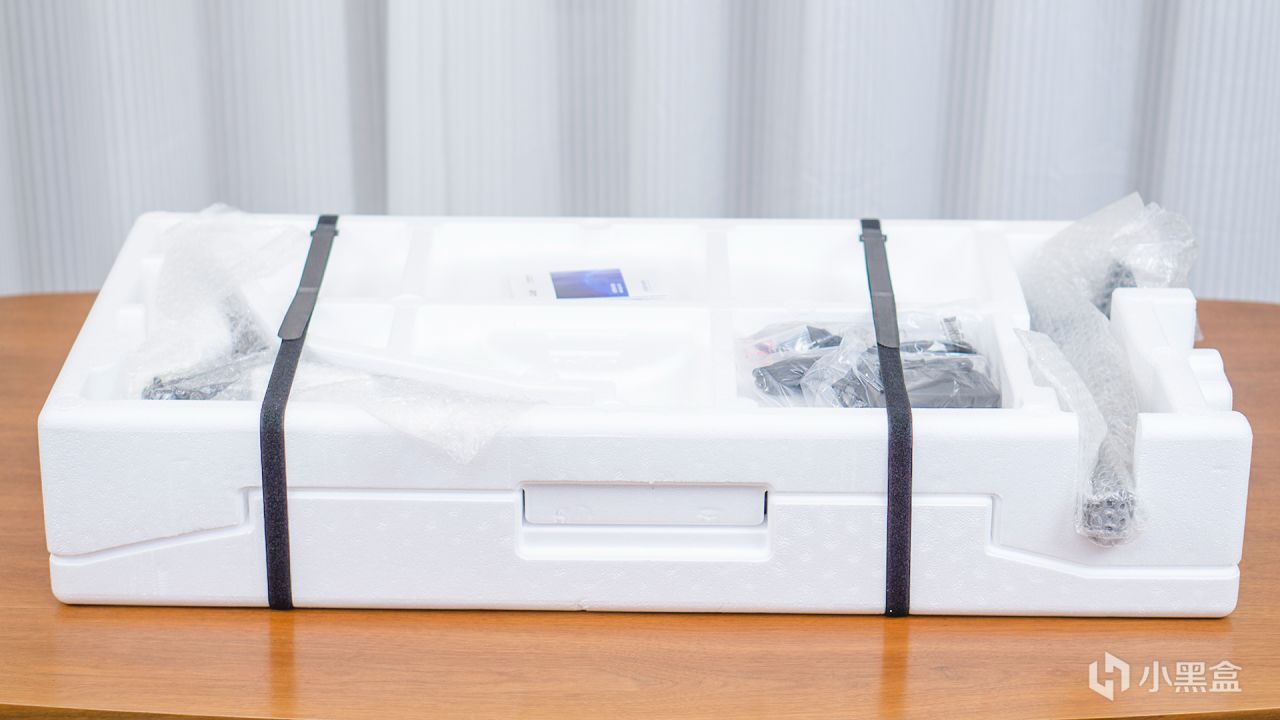 兩條紮帶牢牢地穩固住兩件包材中的顯示器本體,這也算是川升的特色了。雖然走的是經濟路線,但紮實的包裝還是會帶給我們更好的體驗。最上面一層則是顯示器的支架等配件。