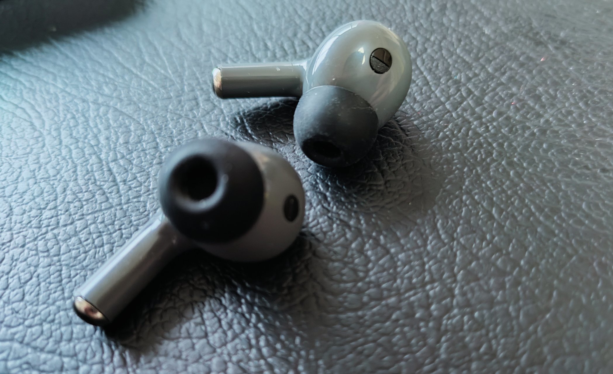 耳机方面的整体颜值还是很高的,我是真的整个爱住了。表面采用了喷砂工艺,可以提升了整体外观的精致度。耳机呢又人体工程学的设计,十分小巧提供了极佳的佩戴舒适性。耳机呢相信大家能看到有一些深色区域,那是耳机的触摸面板,弱水时砂还是很细节的。