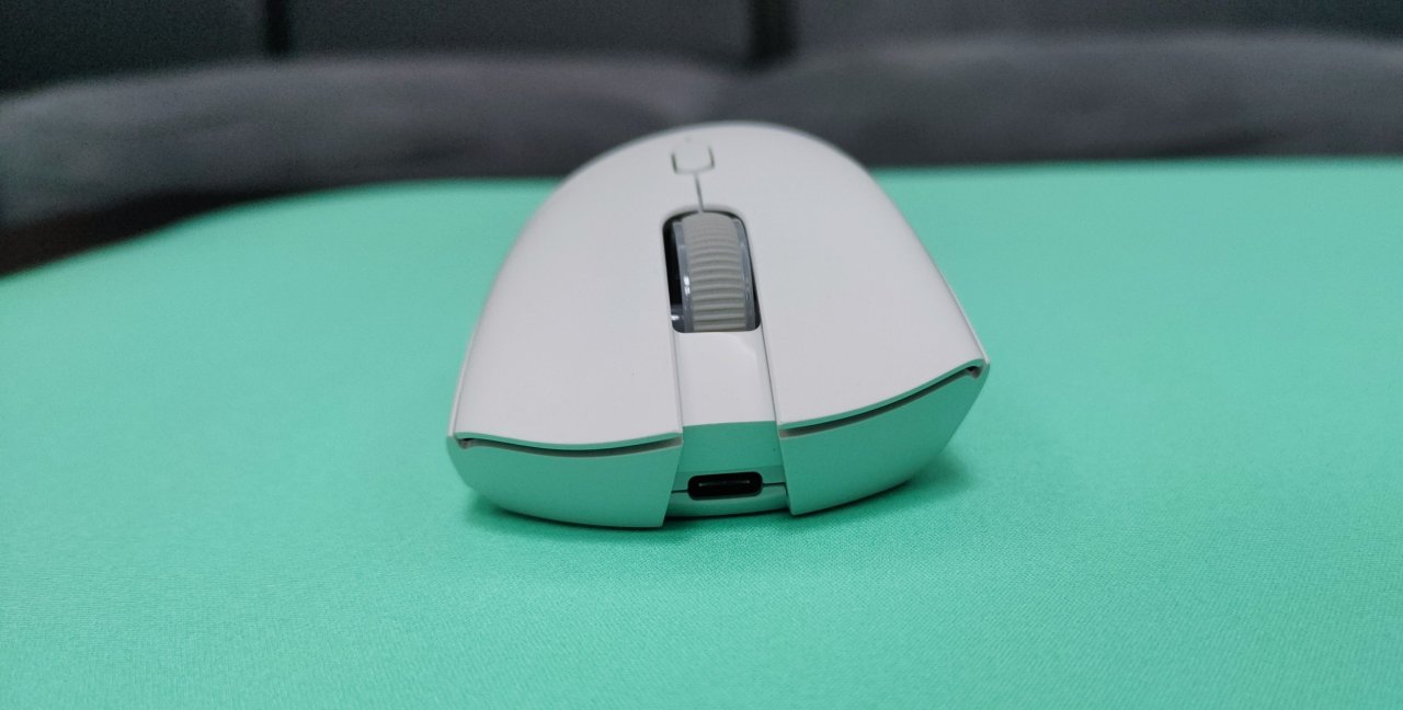 这款鼠标呢做了轻量化设计,仅有60g,他的模具方面模仿了蝰蛇V3的模具,这款鼠标呢在大小上还是比正主略小一筹,较为适合我这种中小手使用,和蝰蛇v3相同,这款鼠标对于趴握玩家十分友好,鼠标的LOGO呢则是充满了中国元素,是一只熊猫。