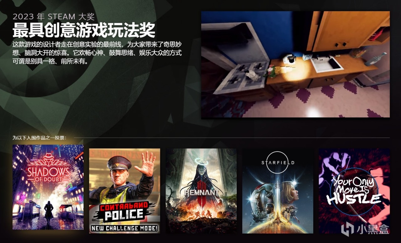 所有提名遊戲都由STEAM玩家投票選出,並且最終獲獎遊戲也是由SETAM玩家羣體投票選出,不管是否有遊戲都可以進行投票。投票將於2023年12月22日凌晨2點開始,2024年1月3日凌晨2點結束並公佈獲獎遊戲。所有參與投票的玩家都會獲得特別的STEAM貼紙獎勵。