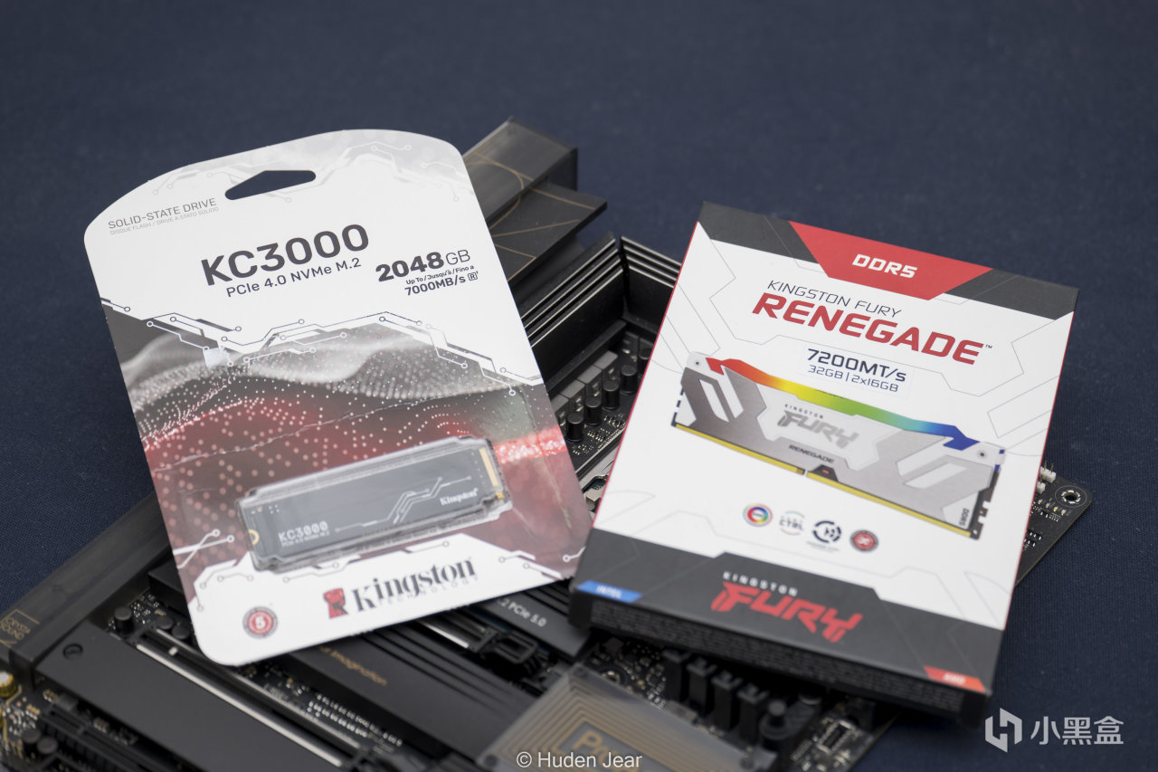 内存和硬盘是金士顿的RENEGADE 7200MHz 16x2和KC30002T,最近硬盘即将涨价,需要买硬盘的朋友得赶紧了。金士顿的高频灯条RENEGADE造型做得确实非常不错,灯光也可以同步,频率高而且稳定,在X670E上也能直接EXPO开机,我觉得是目前比较值得买的高频DDR5内存