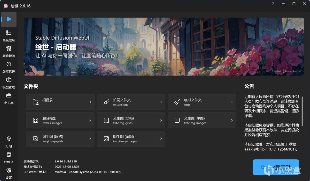 这一部分内容很简单,因为ai绘画目前已经有非常多的整合包了,所以直接使用是没有任何问题的。这里使用的整合包是某站大up秋叶地址的包,具体的使用过程和包的选择可以查看他的文章,需要根据自己的平台和想要的版本来进行选择。