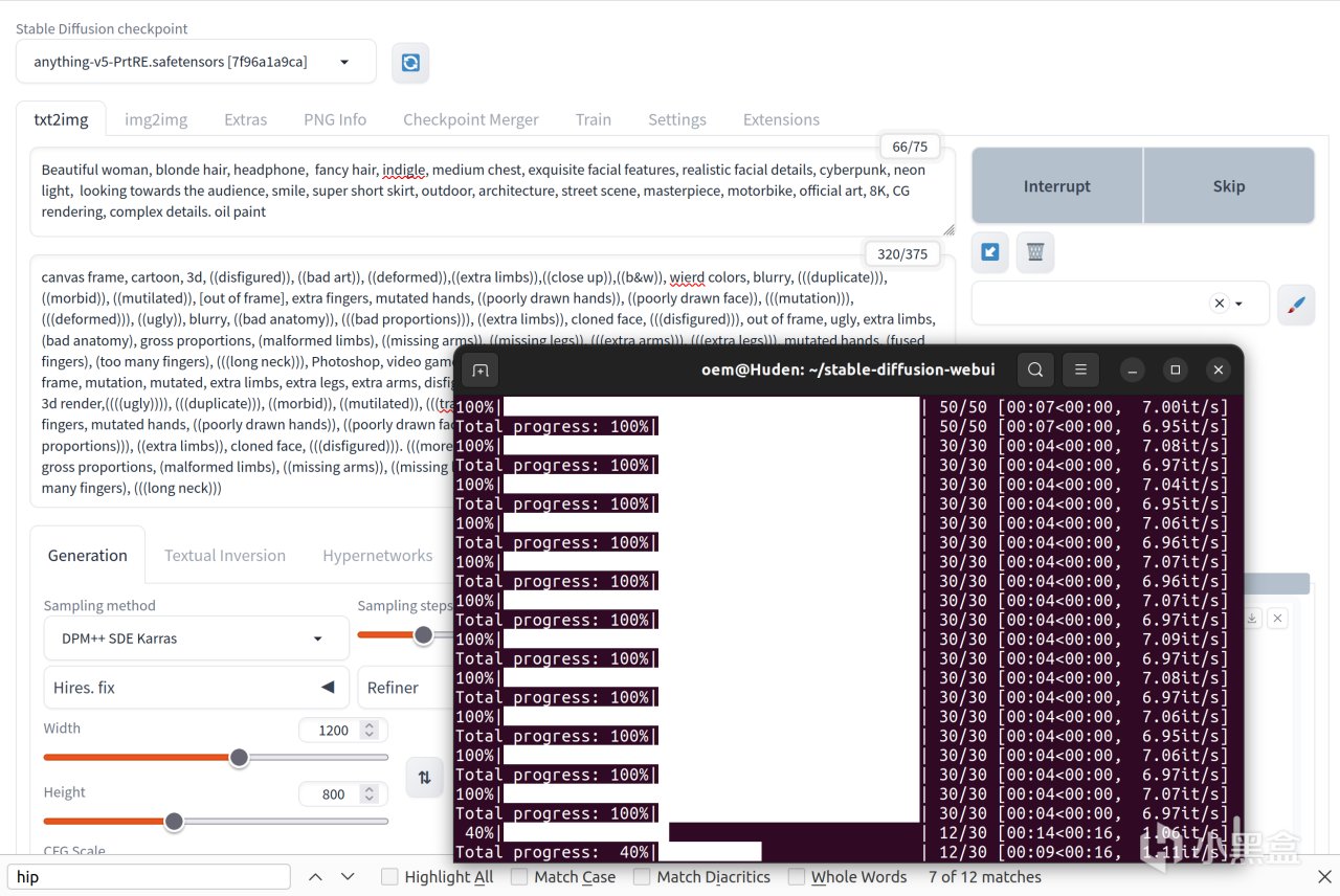 512x512的图片分辨率不够的话可以提升到1200x1200,迭代速度大概4it/s,只要显存够,那么迭代速度只根据图像大小线性下降,倒也是能接受的