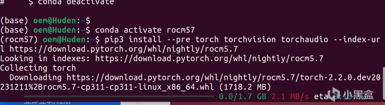 (或者安装预览版)pip3 install --pre torch torchvision torchaudio --index-url https://download.pytorch.org/whl/nightly/rocm5.7
