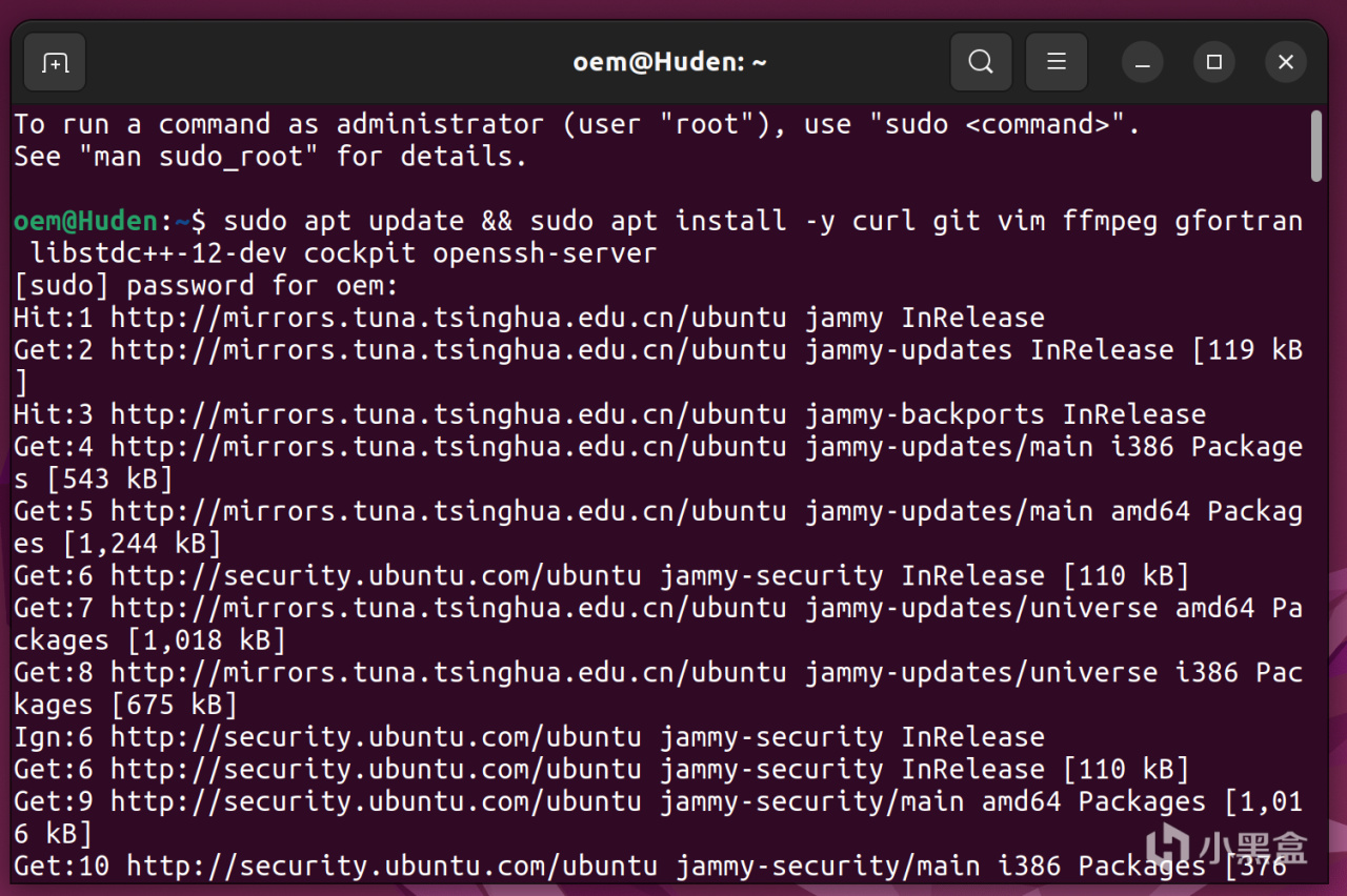 sudo apt install curl vim ffmpeg gfortran libsrdc++-12-dev cockpit openssh-server
