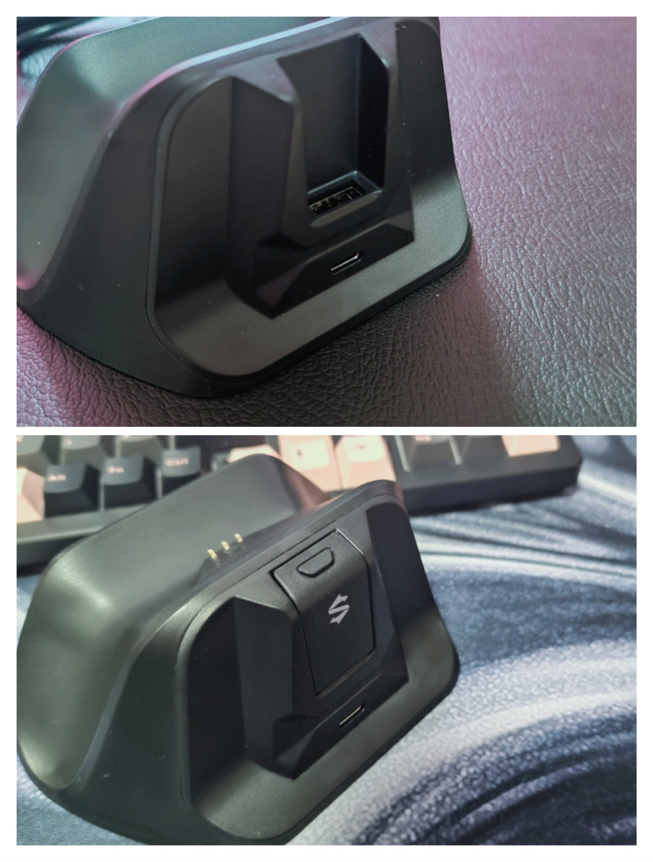 手柄配备的这个底座不单单是个摆件,还可以进行充电,并且底座上还留了个usb接口,一开始不知道是用来干嘛的,后面才发现他可以用来插2.4G接收器,让你省一个槽位,并且插上去后你可以得到更低的延迟,游戏体验更加顺畅