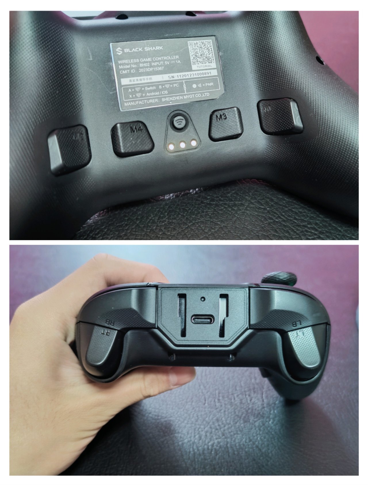 手感上正面细腻,背后做了激光雕刻防滑纹,防滑防汗上的处理做的很不错。背部还有四颗可编程按键,对于那些玩拳皇啦,需要游戏按键多的玩家是个不错的选择。手柄的顶部为一体式肩键,手感的一致性做的很不错。