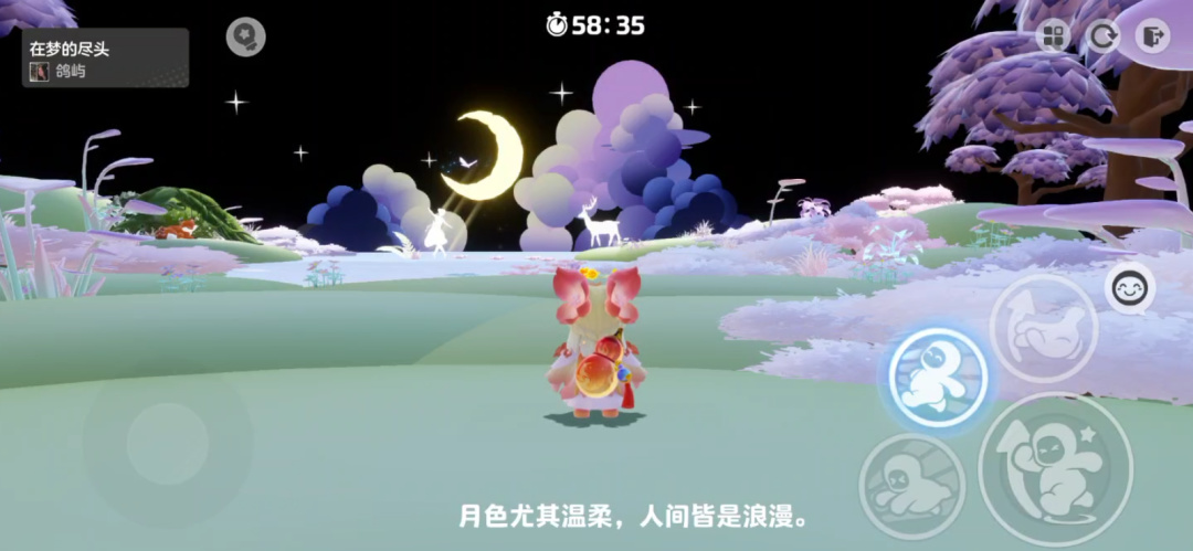 比如,侧重于外观设计的「在梦的尽头」地图,便是颜控不容错过的打卡点。地图融入了小鹿、精灵、天鹅、公仔、秋千等童话元素,通过一个个简单的关卡寻找梦的尽头,为玩家呈现了一个充满彩色泡泡的梦幻世界。