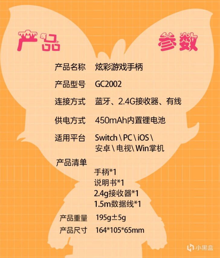 产品清单包括手柄本身1个、说明书1份、2.4g接收器1个、1.5m数据线1个、御三家手柄贴纸各1份。