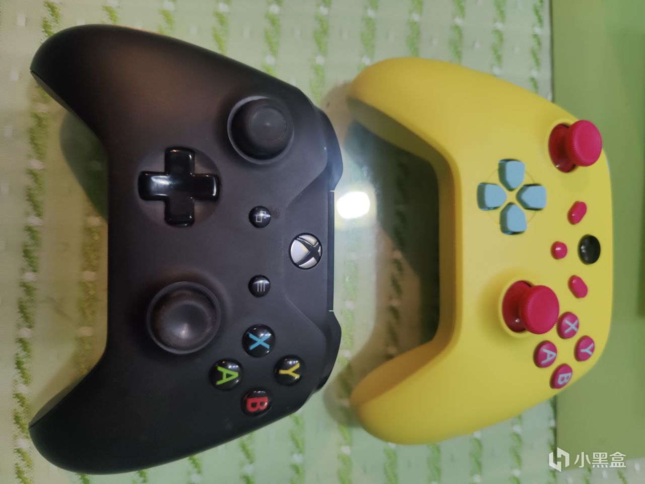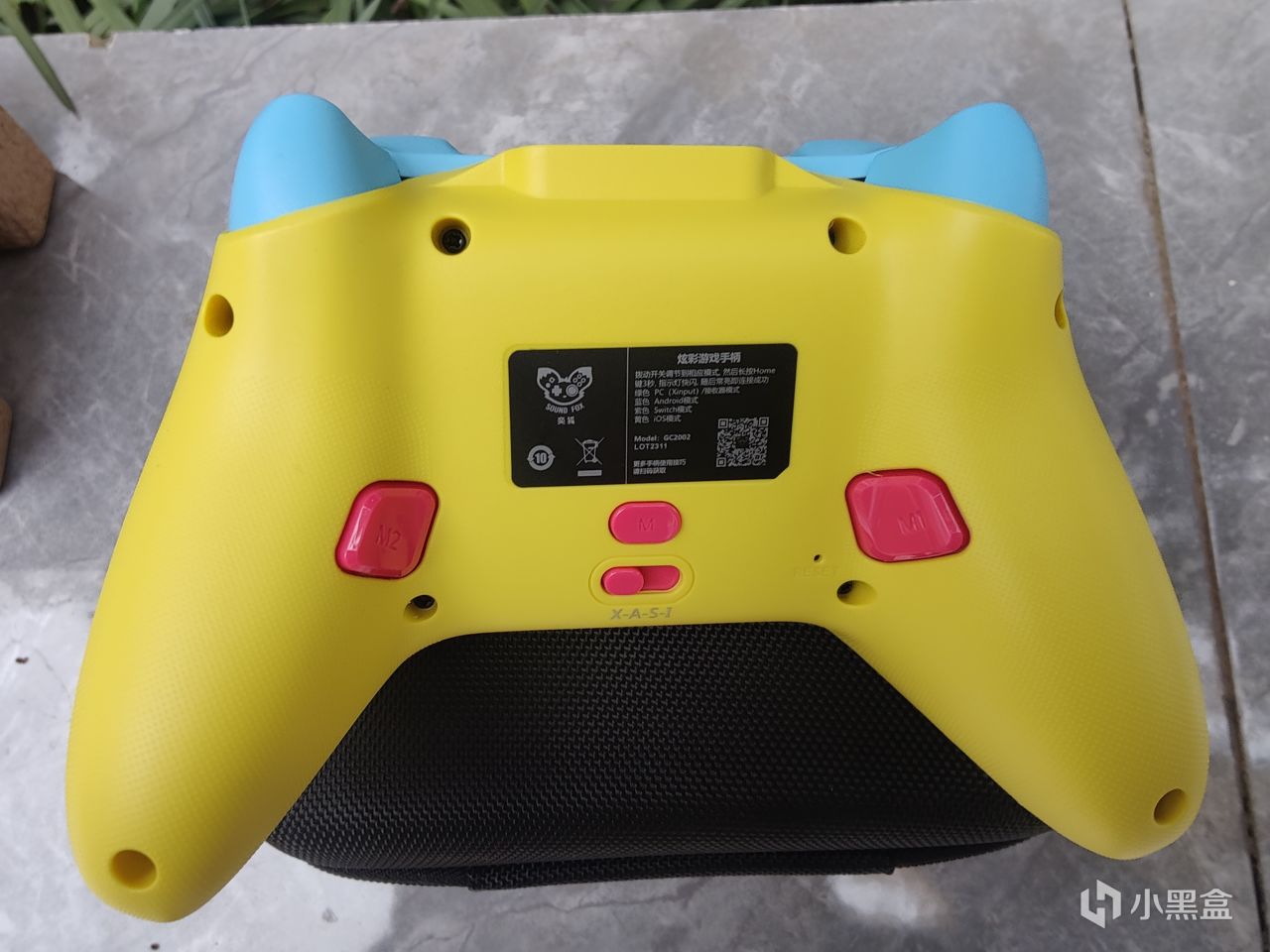 从对比图上来看,奕狐炫彩比XBOXONE手柄稍微大一点点,但基本感觉不出来。但是奕狐炫彩的重量更轻,长期持握下会更轻松。
