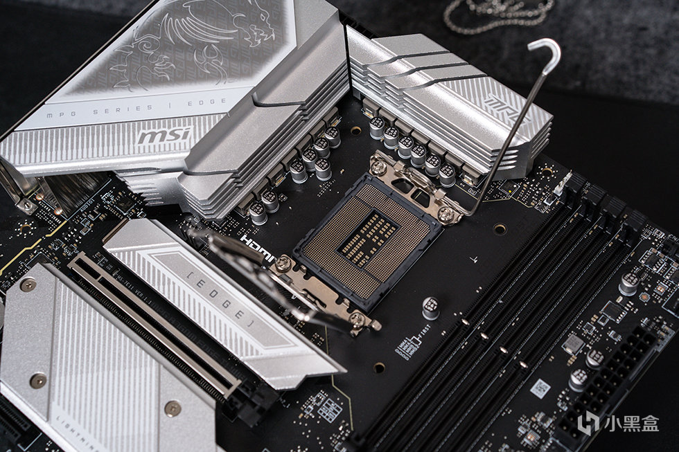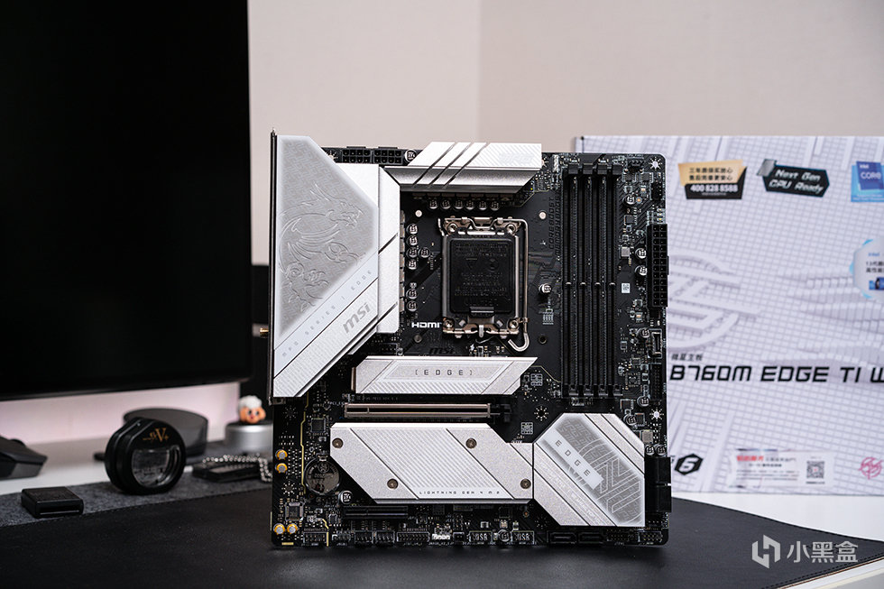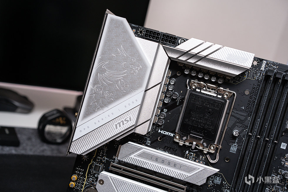 微星MPG B760M EDGE TI WIFI主板的延续了刀锋系列的优雅的银白配色,配合MATX版型更适合打造紧凑型白色PC装机。这不仅是对美学的追求,也体现了微星在细节上的精心打磨。更大范围的一体化的散热装甲设计不仅美观,还提供了更好的散热稳定性和耐用性。