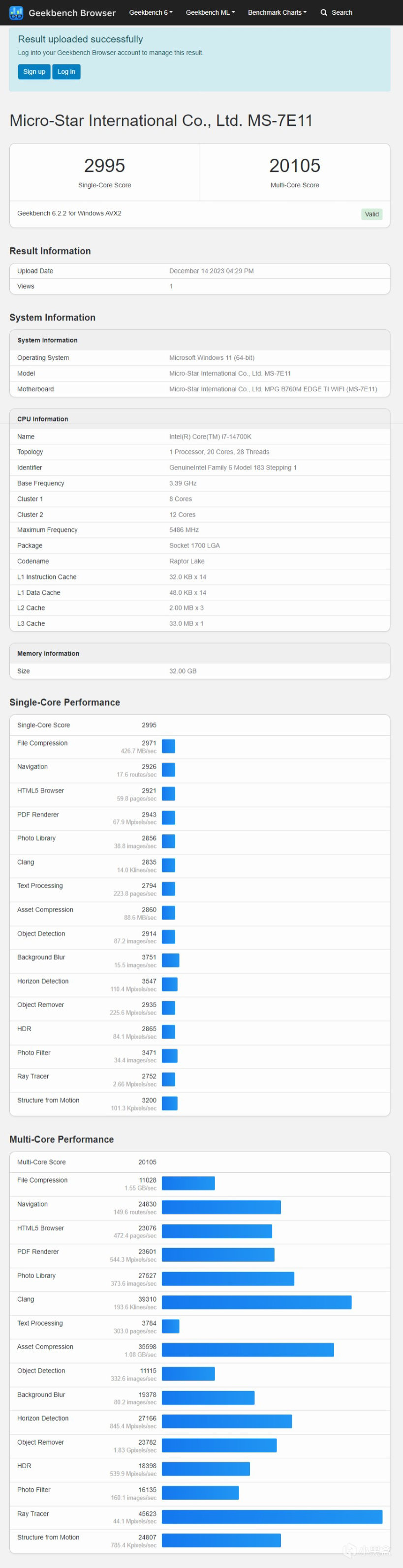 CPU使用14代里最值得购买的14700K,采用 10 纳米工艺,拥有 8 个大核,12 个小核,总共 20 个内核 28 线程,二级缓存为 28MB,智能缓存为 33MB。标准运行频率为 3.4GHz,最高运行频率为 5.6GHz,功耗为 125W。