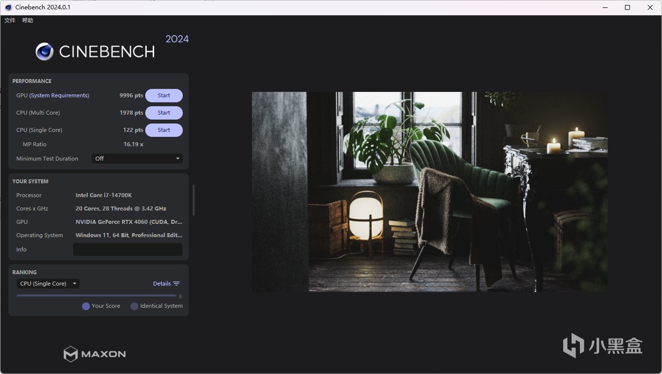 CINEBENCH R23 和最新版本的2024跑分测试成绩。