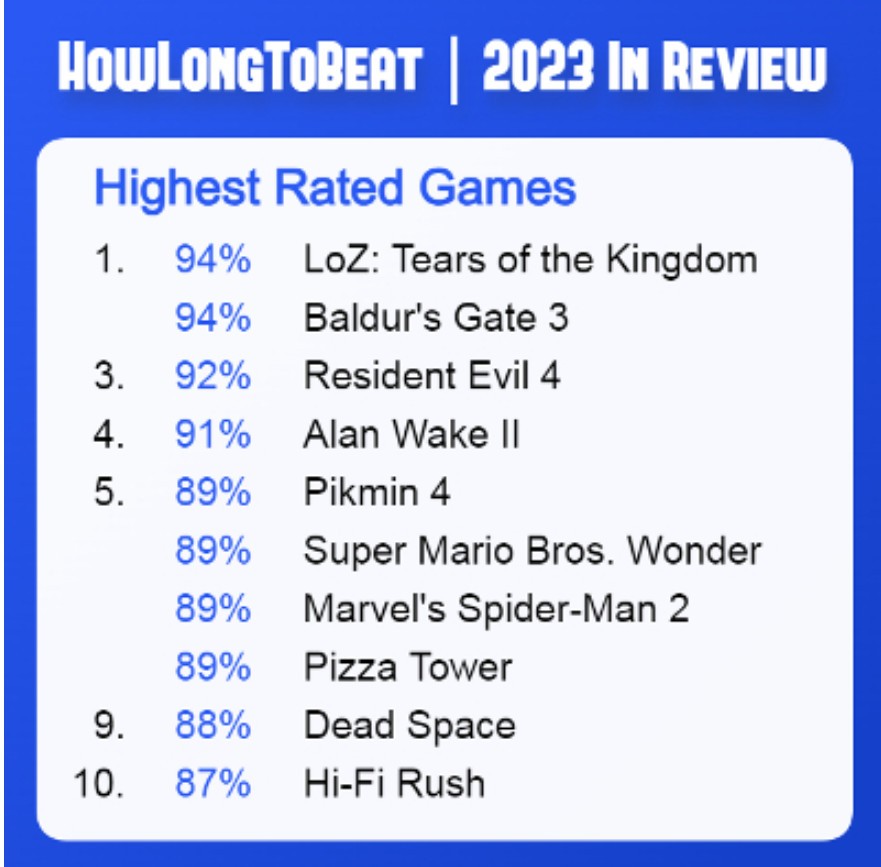“評分最高的遊戲”:《塞爾達傳說:王國之淚》和《博德之門3》並列第一