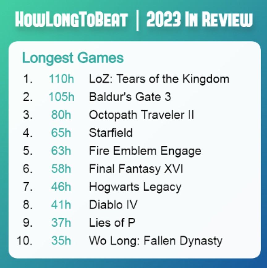 “時長最多的遊戲”:《塞爾達傳說:王國之淚》超《博德之門3》登頂