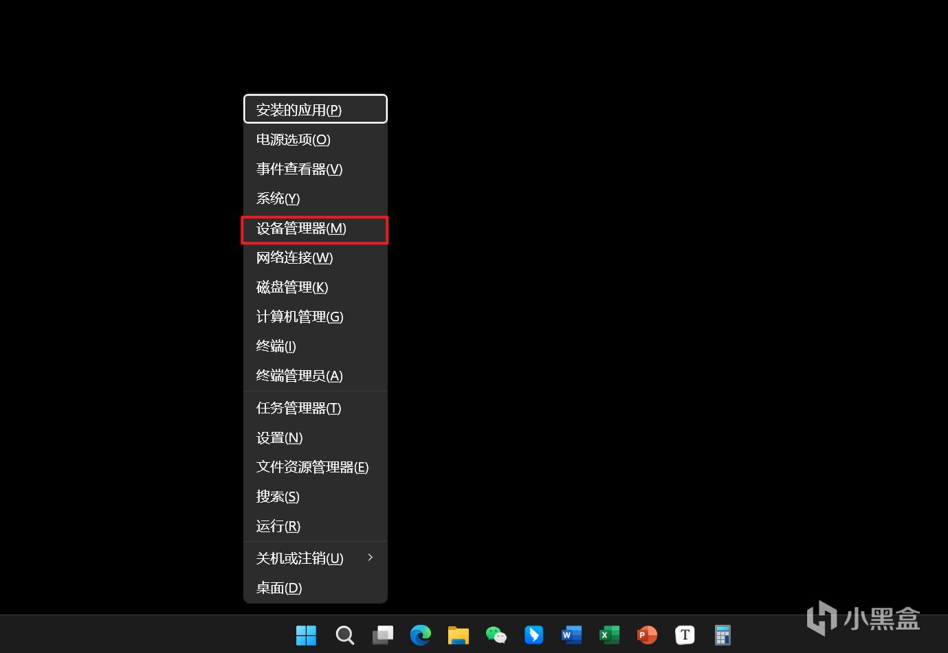 进入安全模式后,首先按win+x,调出快捷面板,按M进入设备管理器。