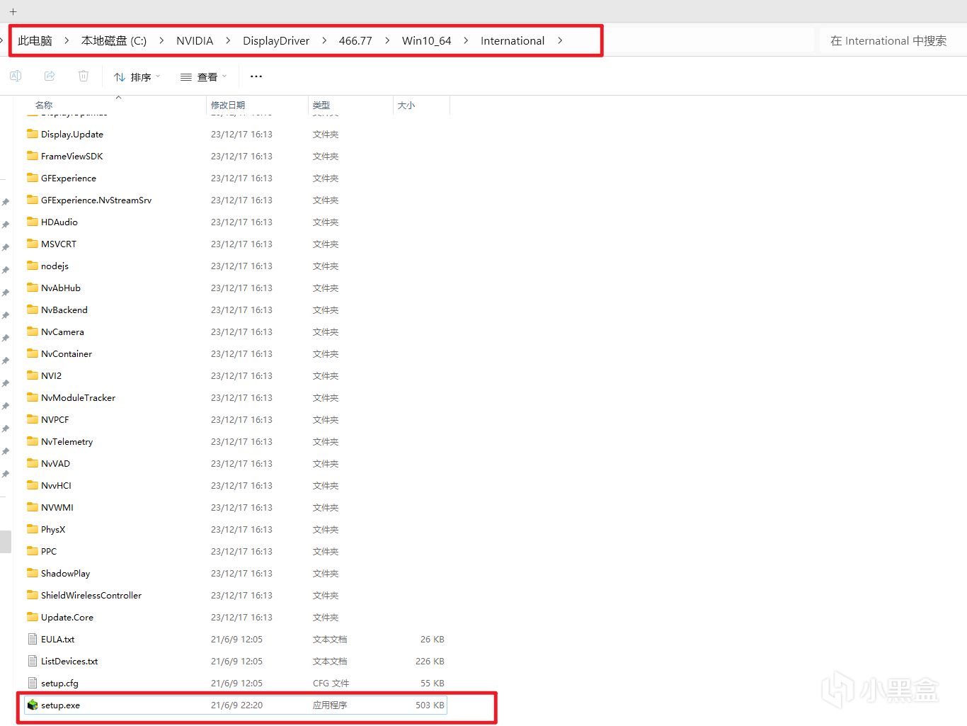 重启后进入系统,找到我们之前复制后的NVDIA文件夹,按照红框内路径,找到并打开安装程序。