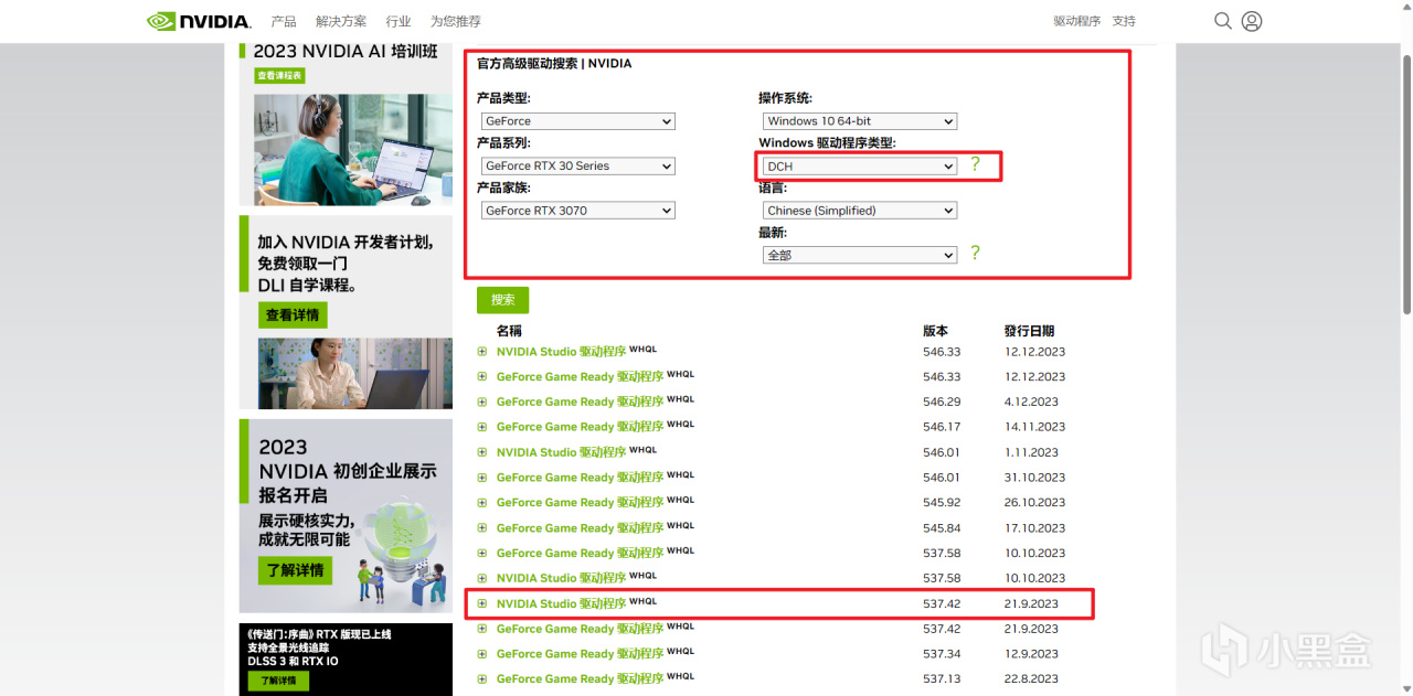 按照红框内的选项选择,这里说明一下,有些朋友按照DCH选项找发现只有最新的,是因为DCH和标准是两种不同的类型,需要区别查找。