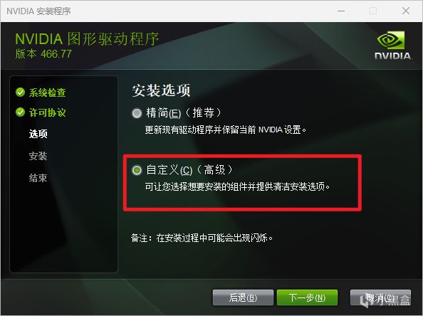首先第一个要优化的点就是显卡驱动,在玩PUBG之前一直觉得显卡驱动要保持最新,但是PUBG告诉我,我不要你觉得,我只要我觉得。本人的显卡是笔记本3070,于是乎,各种版本驱动反复测试,反复卸载,一路从最新降级测试,终于到了要测试466.77这个大家公认最稳定版本的时候,出现了下图情况: