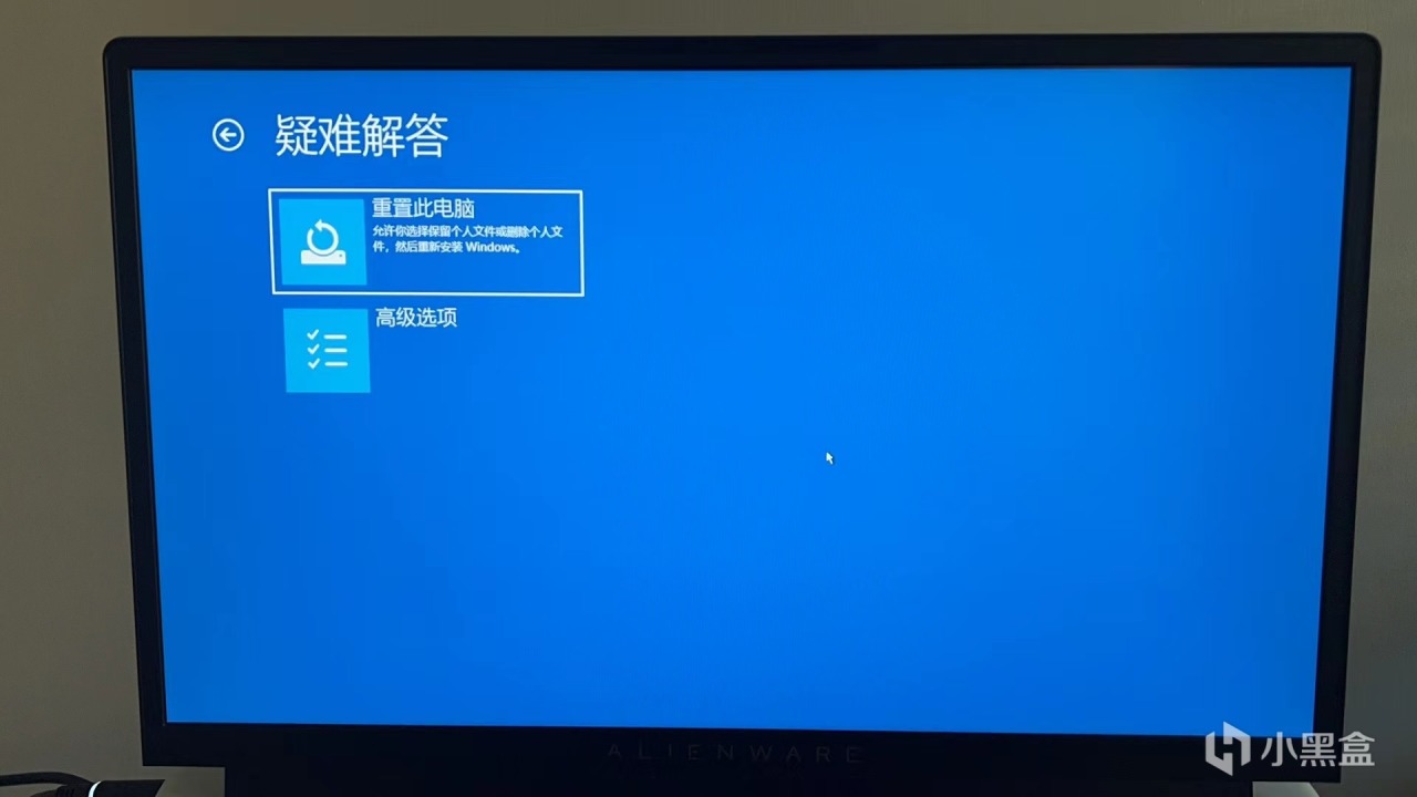 在疑难解答界面选择高级选项。(我没有红框标注,千万别选重置电脑啊兄弟!)