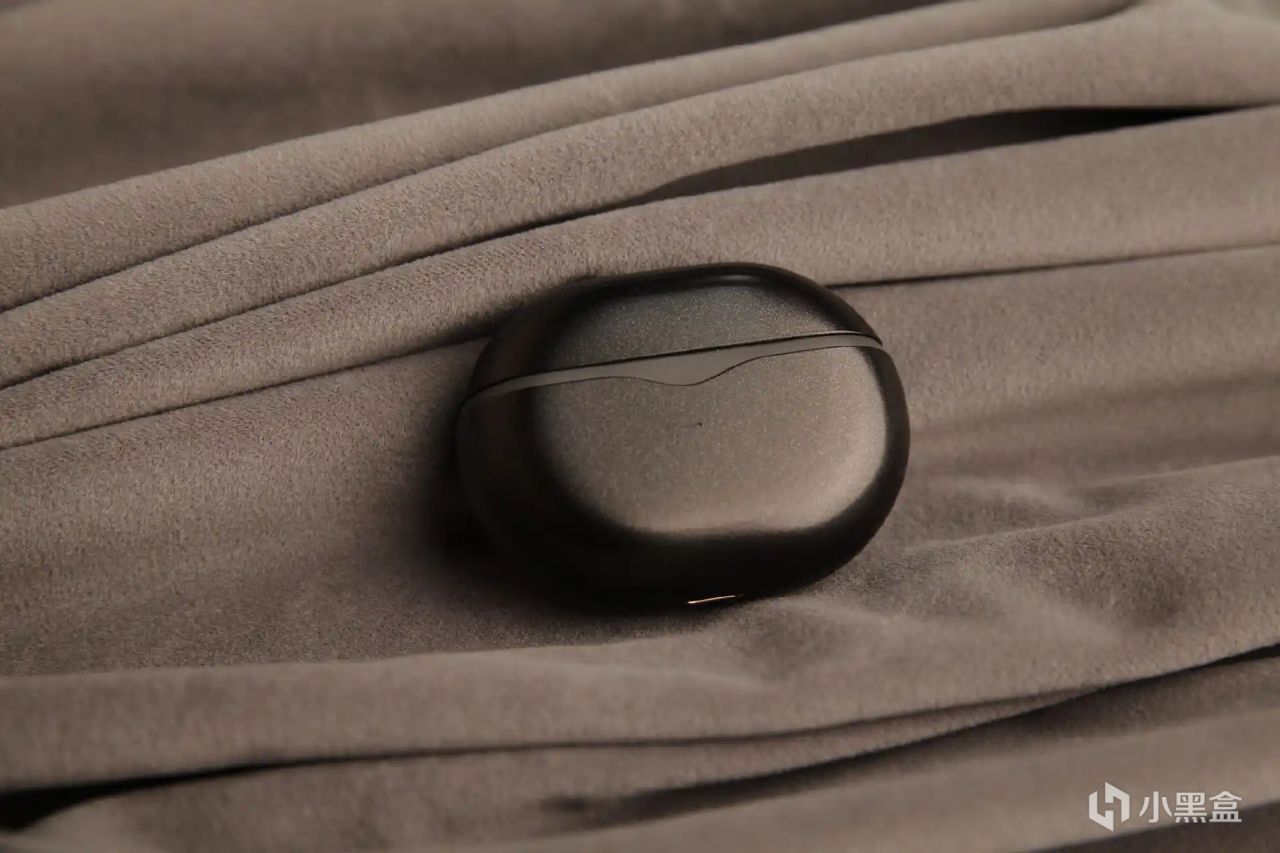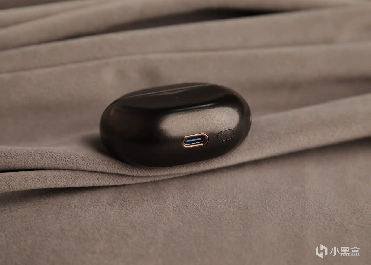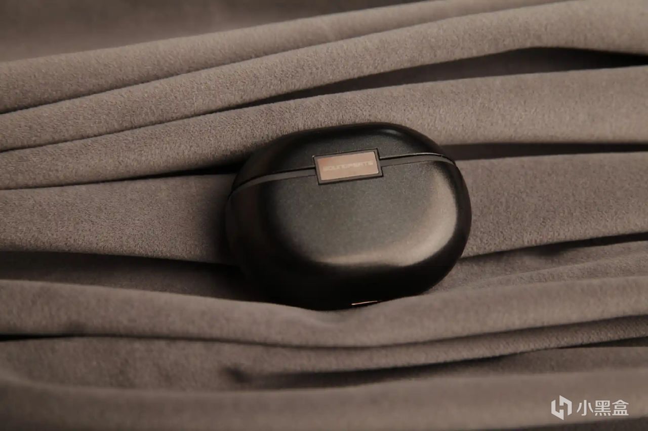 充电仓的也采用了圆润的鹅卵石造型,体积不大,单手的握持感很舒服,也方便我们收纳和携带。在充电仓部分还加入SoundPEATS 金色铭牌点缀,很有设计感。充电仓开盖的阻尼也控制挺好,开闭都很顺滑,方便取放耳机。